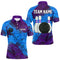Blisscorners Blue and Purple Grunge Camo Heartbeat Bowling Polo, 1/4 Zip Shirt For Men Custom Bowling Team JerseyMT0306