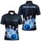 Blisscorners Custom Black And Blue Hexagon Flame Bowling Polo Shirts For Men, Bowling Team Shirt LM3006