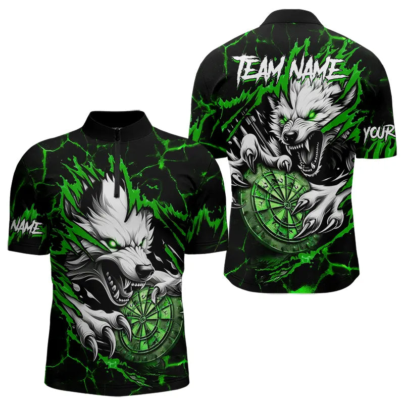 Blisscorners Personalized Wolf Lightning Darts Polo & Quarter Zip Custom Dart Shirts For Men Darts Jersey |Green