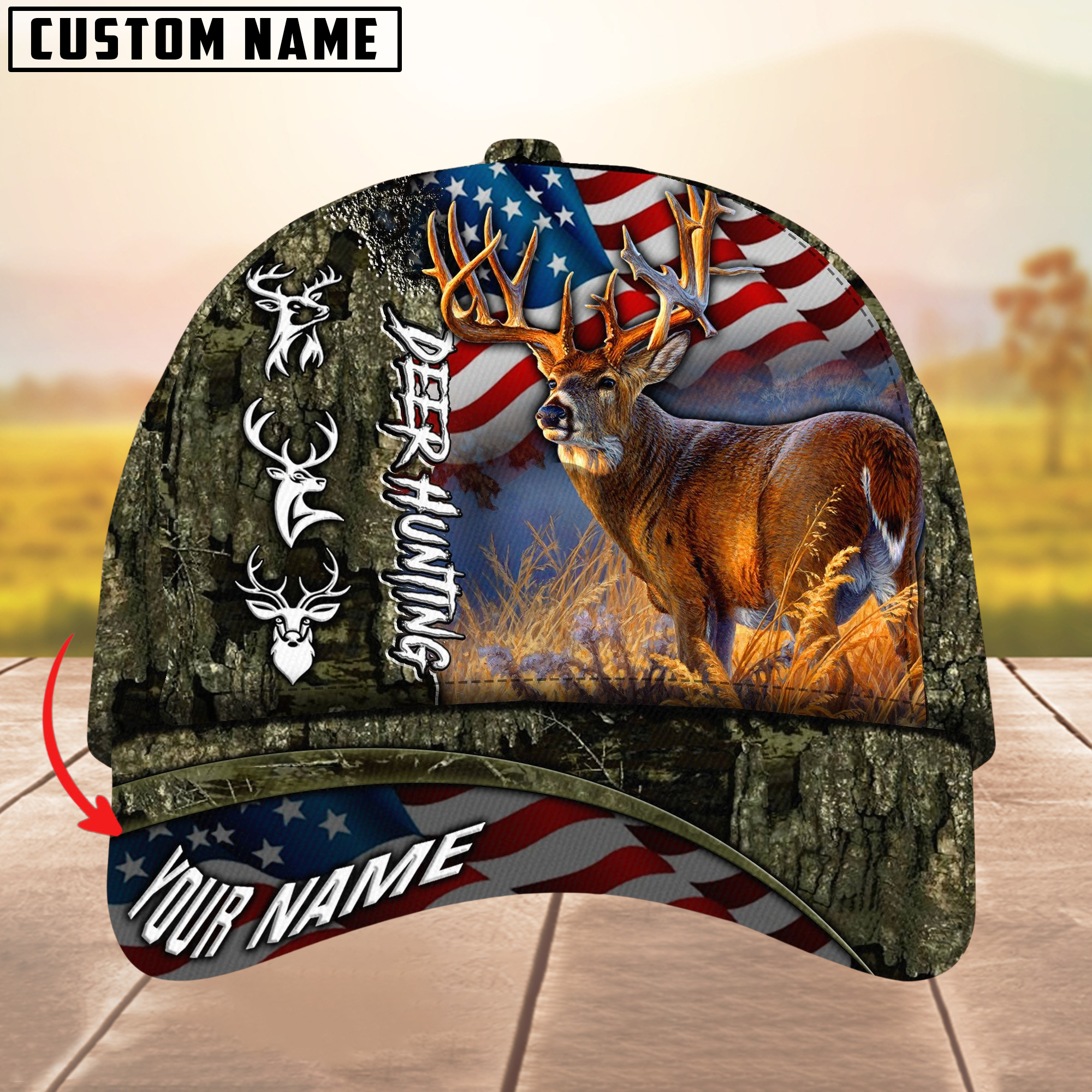 Blisscorners Hagre Zumjyre Deer Hunting American Flag Multicolor Personalized Name 3D Cap