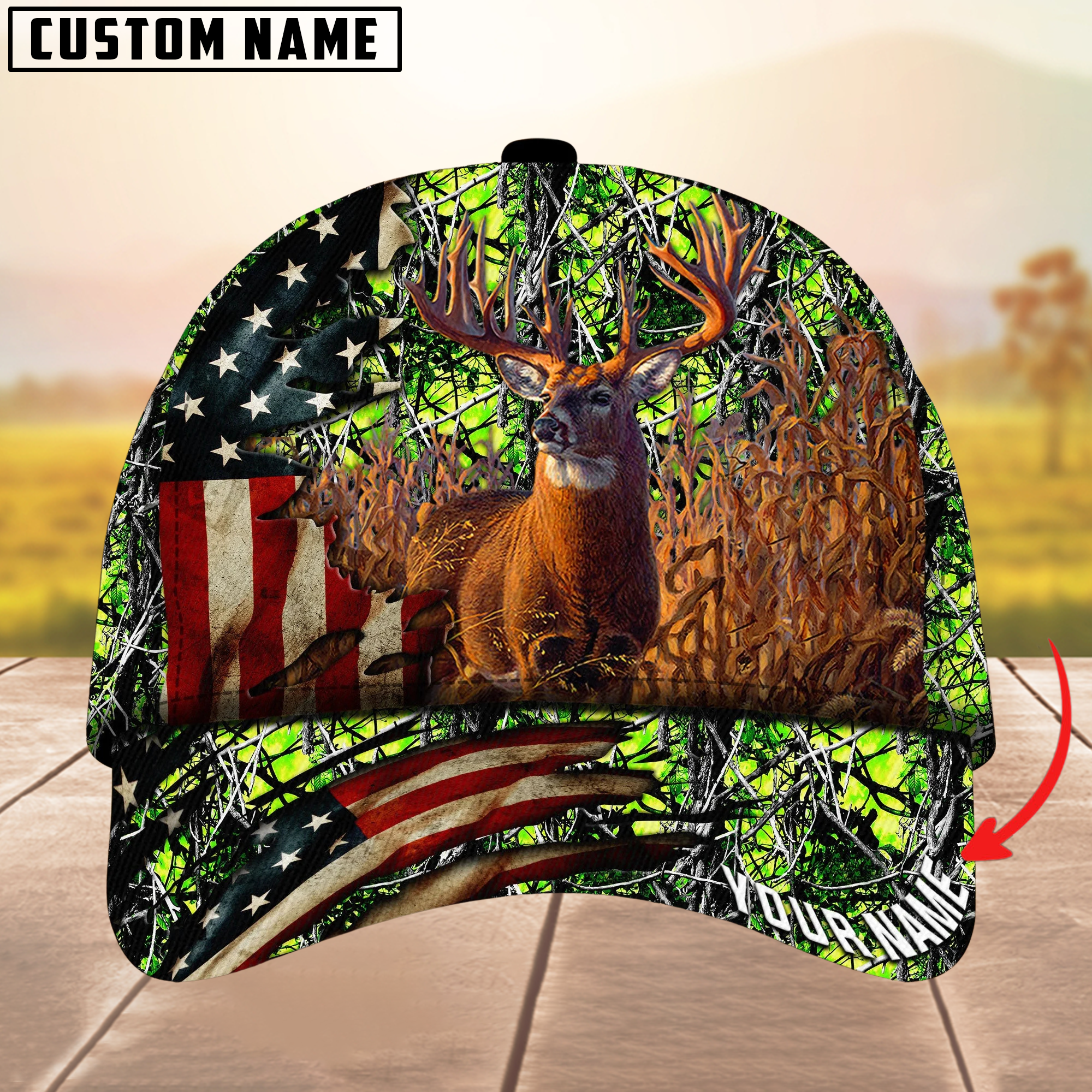 Blisscorners Deer Hunting American Flag Camouflage Pattern Multicolor Personalized Name 3D Cap