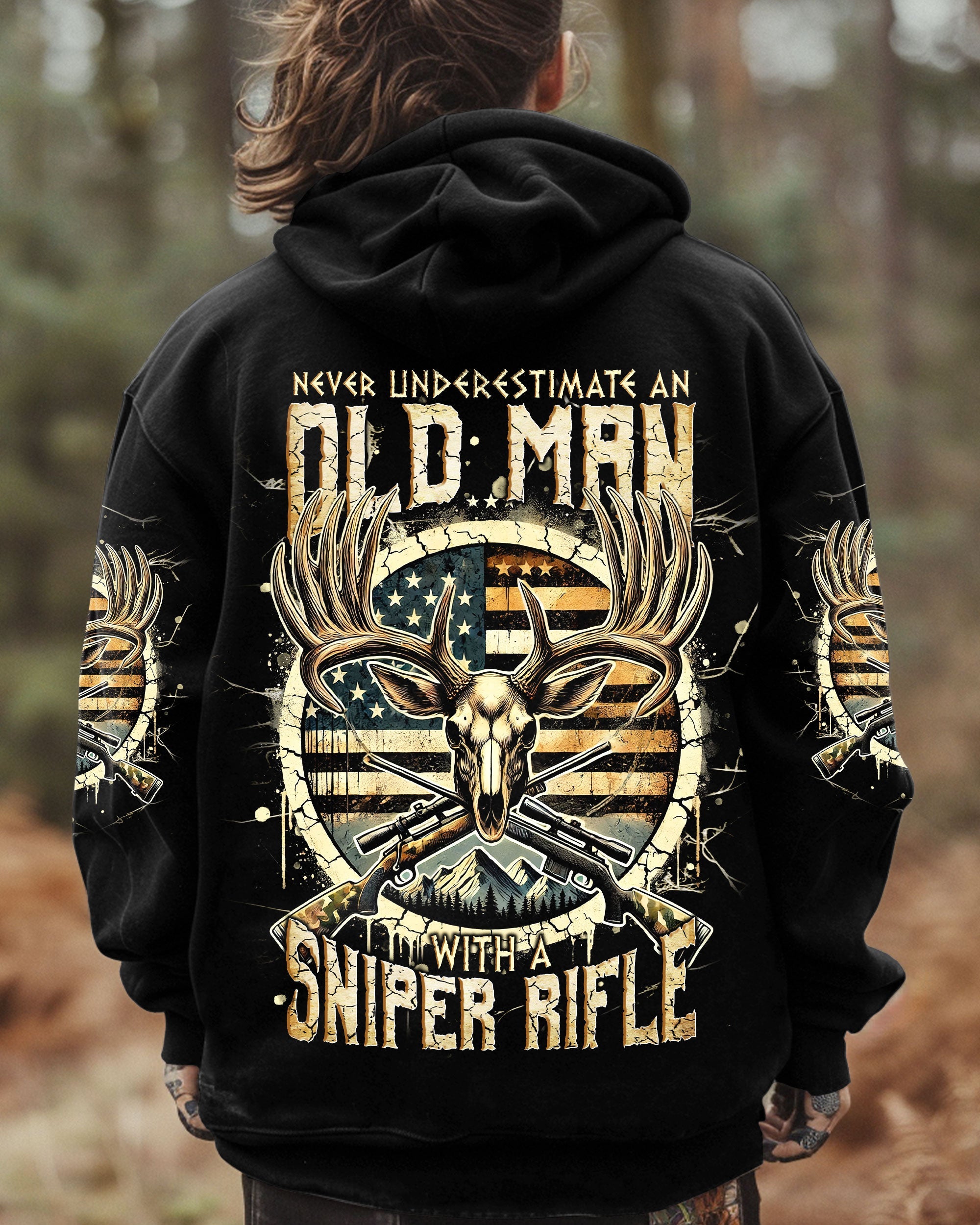 BLISSCORNERS NEVER UNDERESTIMATE AN OLD MAN WITH A SNIPER RIFLE ALL OVER PRINT