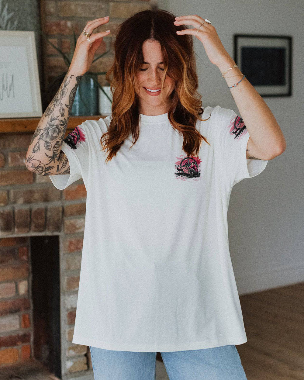 Low iron only: If needed, iron inside-out and avoid direct contact with the printed areas.