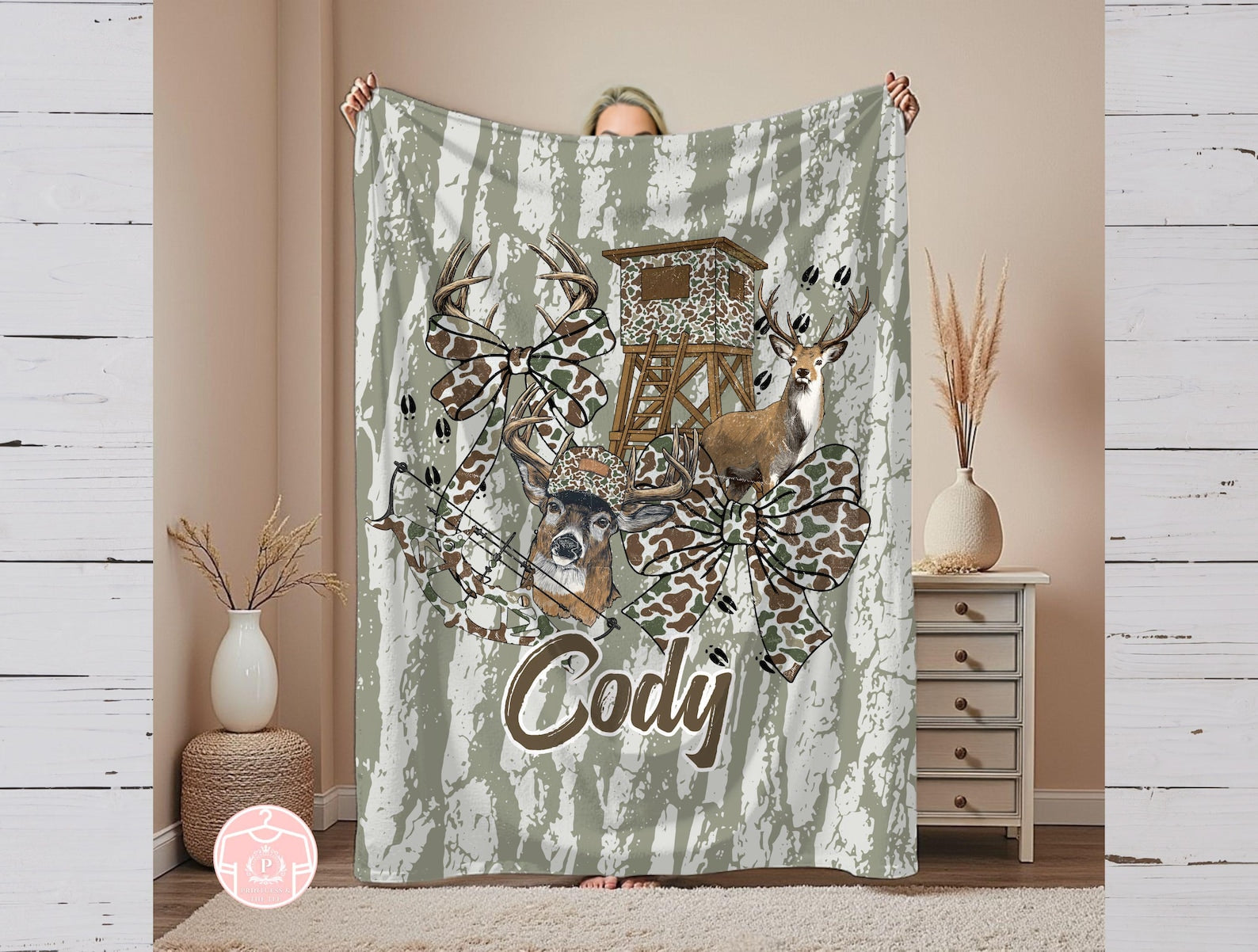 Blisscorners Hunting Season Blanket, Custom Camo Deer Throw Blanket, Personalized Blanket, Hunters Gift, Deer Stand, Bow Hunting, Gift for Him, Hunting LM1611