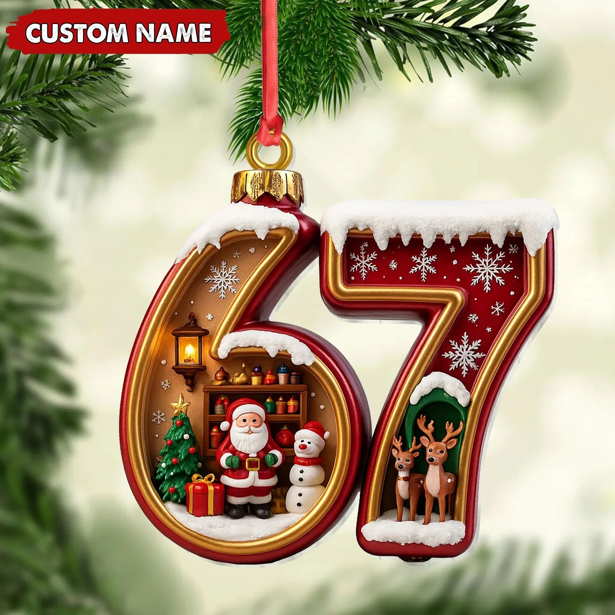 Blisscorners Personalized 67 Christmas Ornament, Custom Name Santa & Reindeer Number 67 Bauble, Holiday Tree Decoration