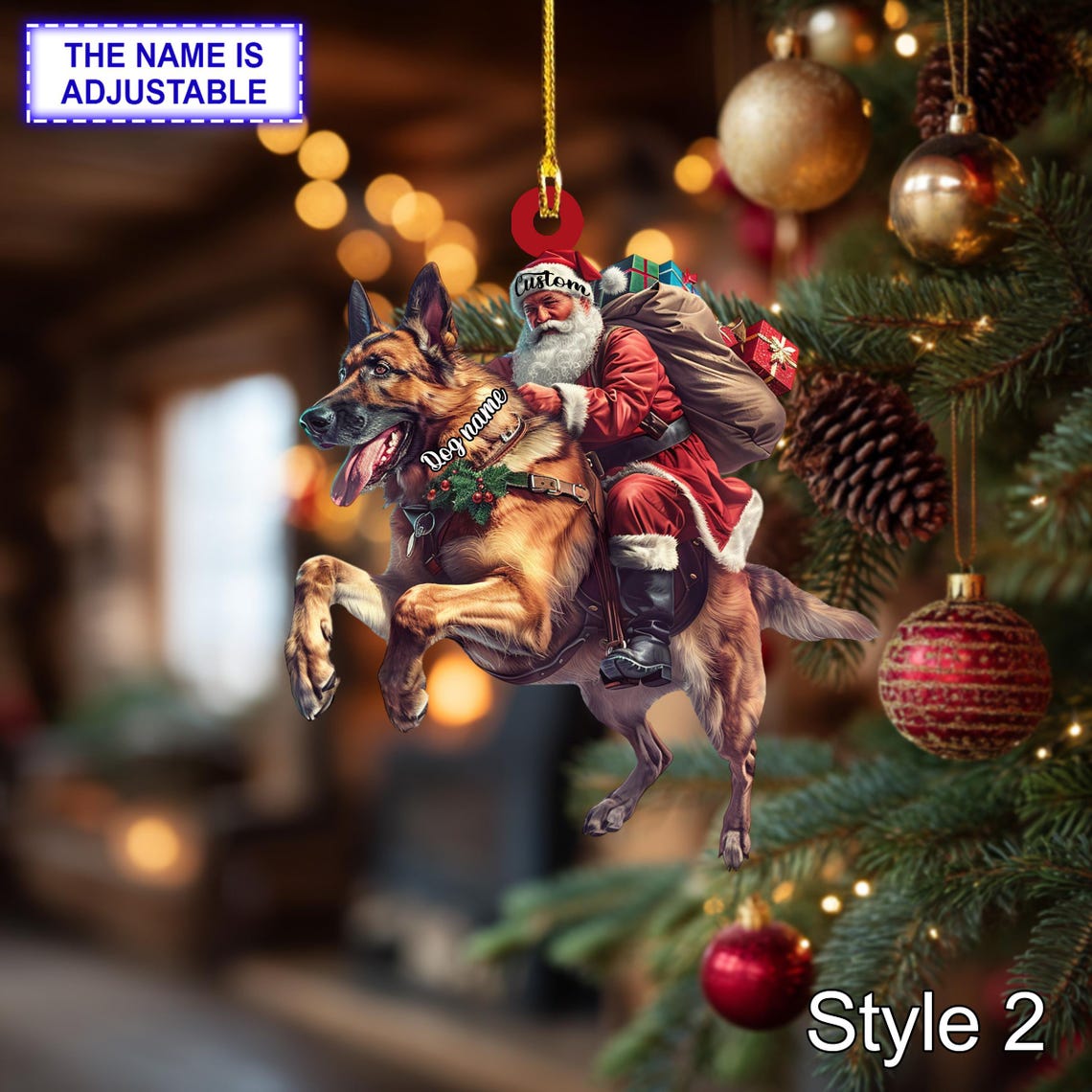 Blisscorners Santa Riding German Shepherd Christmas Ornament - Funny Dog Lover Tree Hanging Decoration, Holiday Pet Gift, Custom German Shepherd Ornament2D Flat LM2511