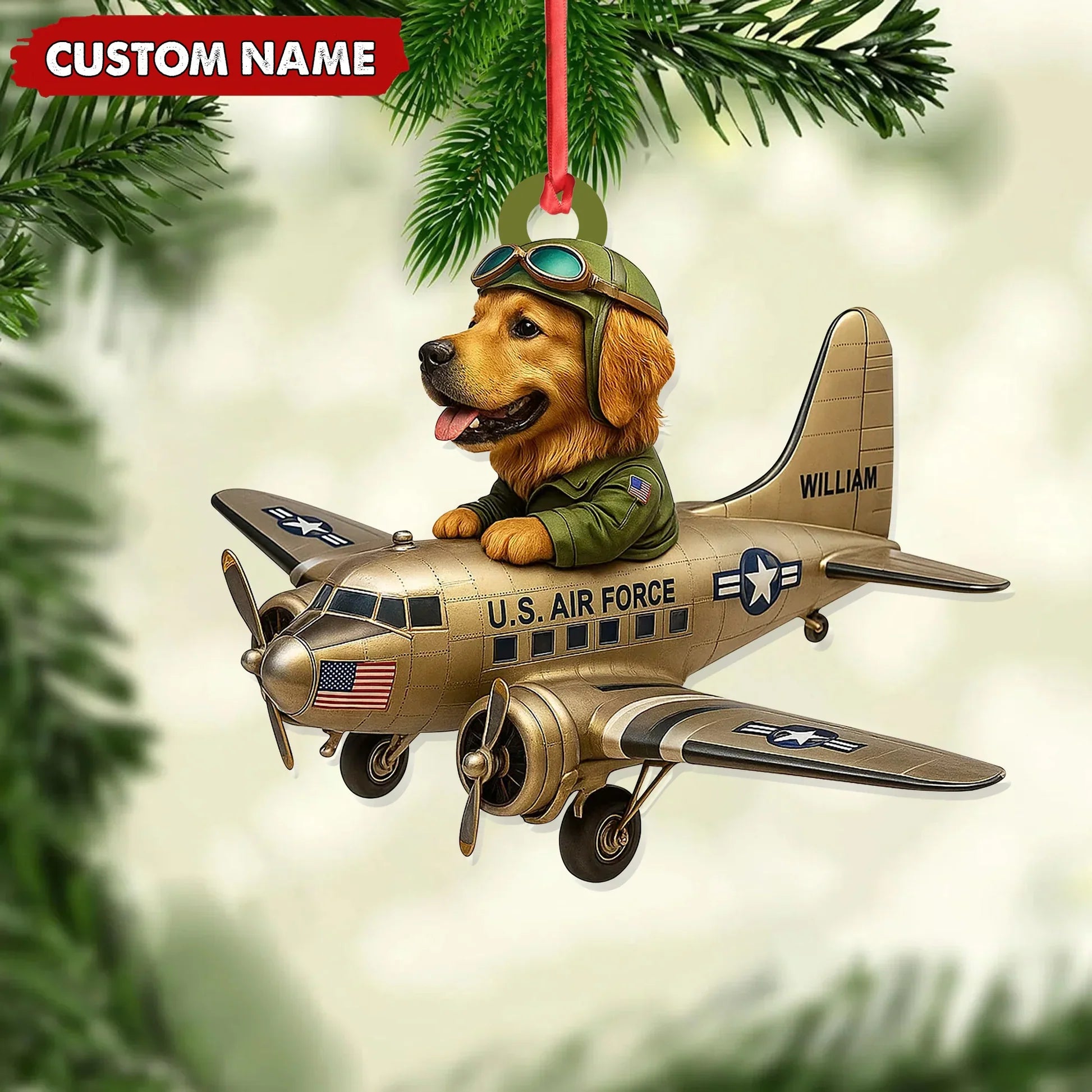Blisscorners Personalized Dog Pilot Christmas Ornament And Keychain, Custom Name U.S. Air Force Airplane, Military Dog Lover Tree Decor Gift