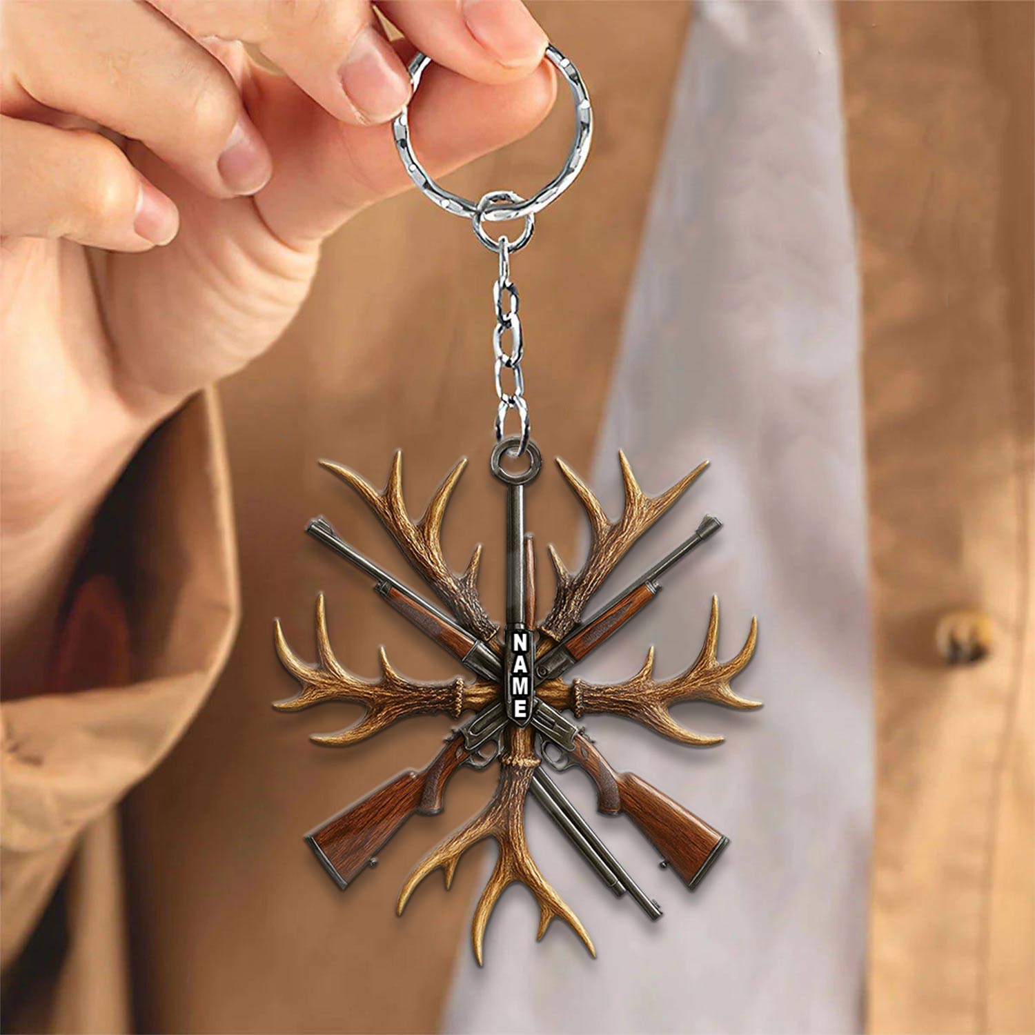 Blisscorners Custom Name Hunting Ornament, Antlers and Rifles Christmas Decor for Hunters LM0411