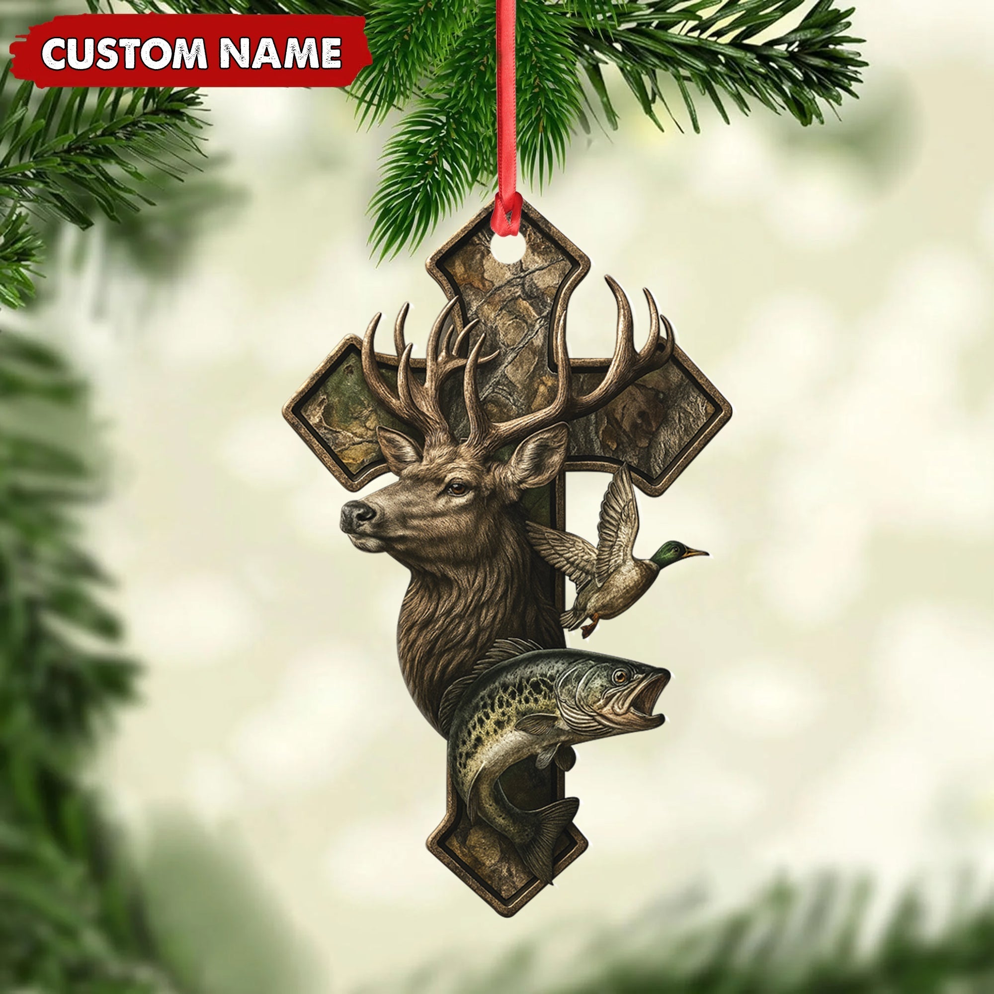 Blisscorners Personalized Hunter Acrylic Ornament - Deer, Duck & Fish Cross Design for Christmas Tree Decor LM0411