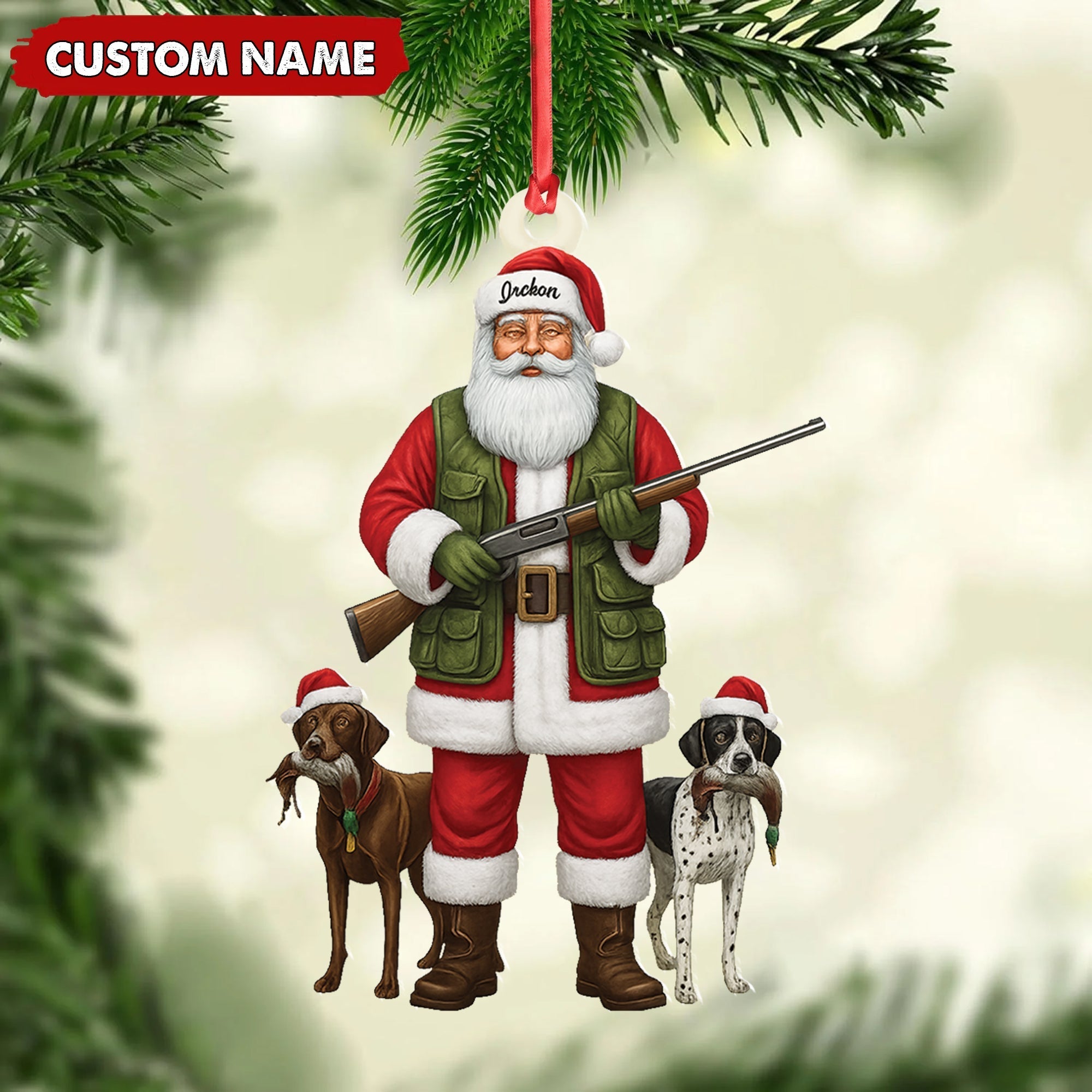 Blisscorners Personalized Santa Hunter Christmas Ornament - Funny Dog Lover Acrylic Holiday Decor LM0411