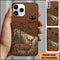 Blisscorners Artist Hunting Deer Zipper Leather Brown Forest Scene Personalized Name Phone Case