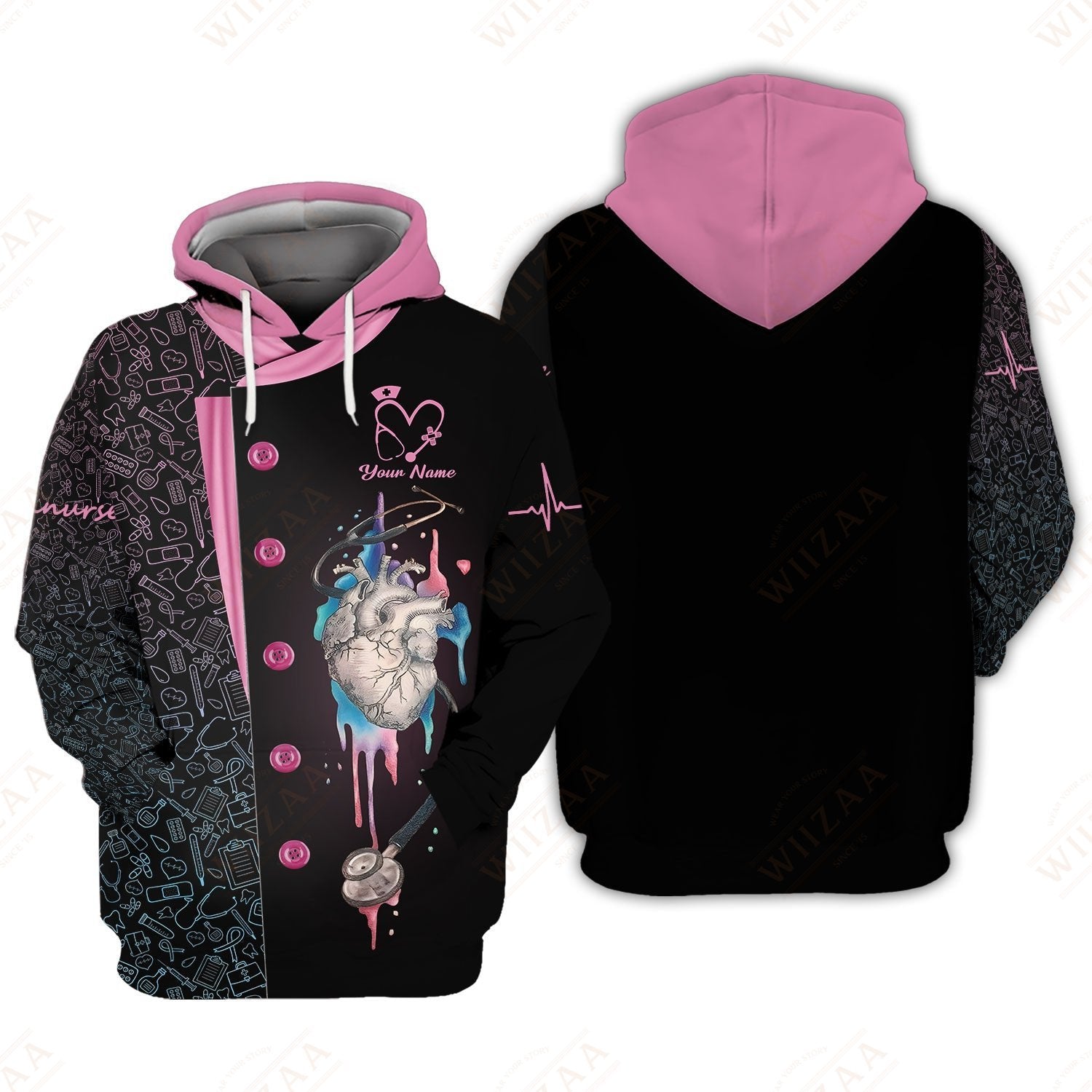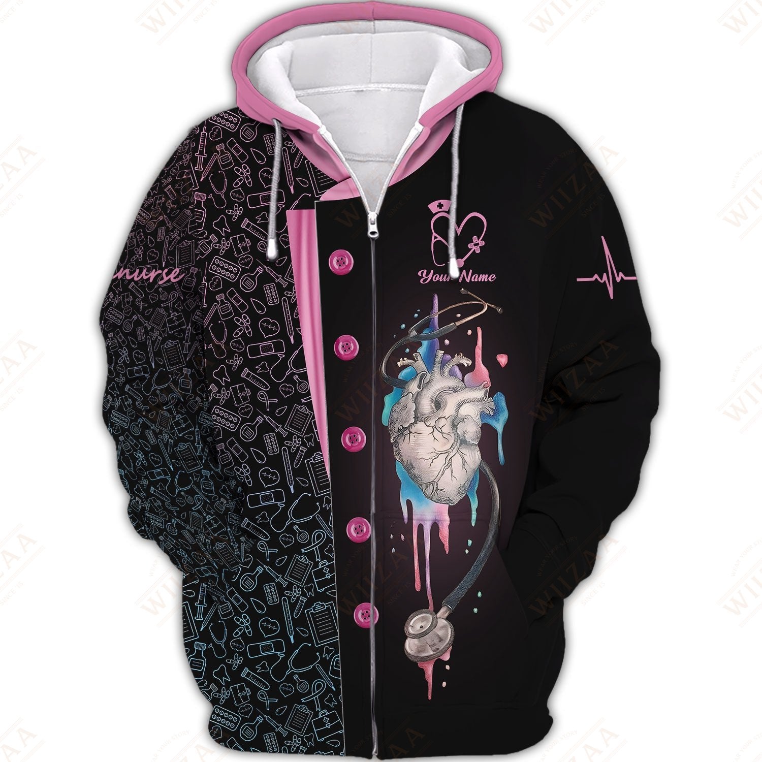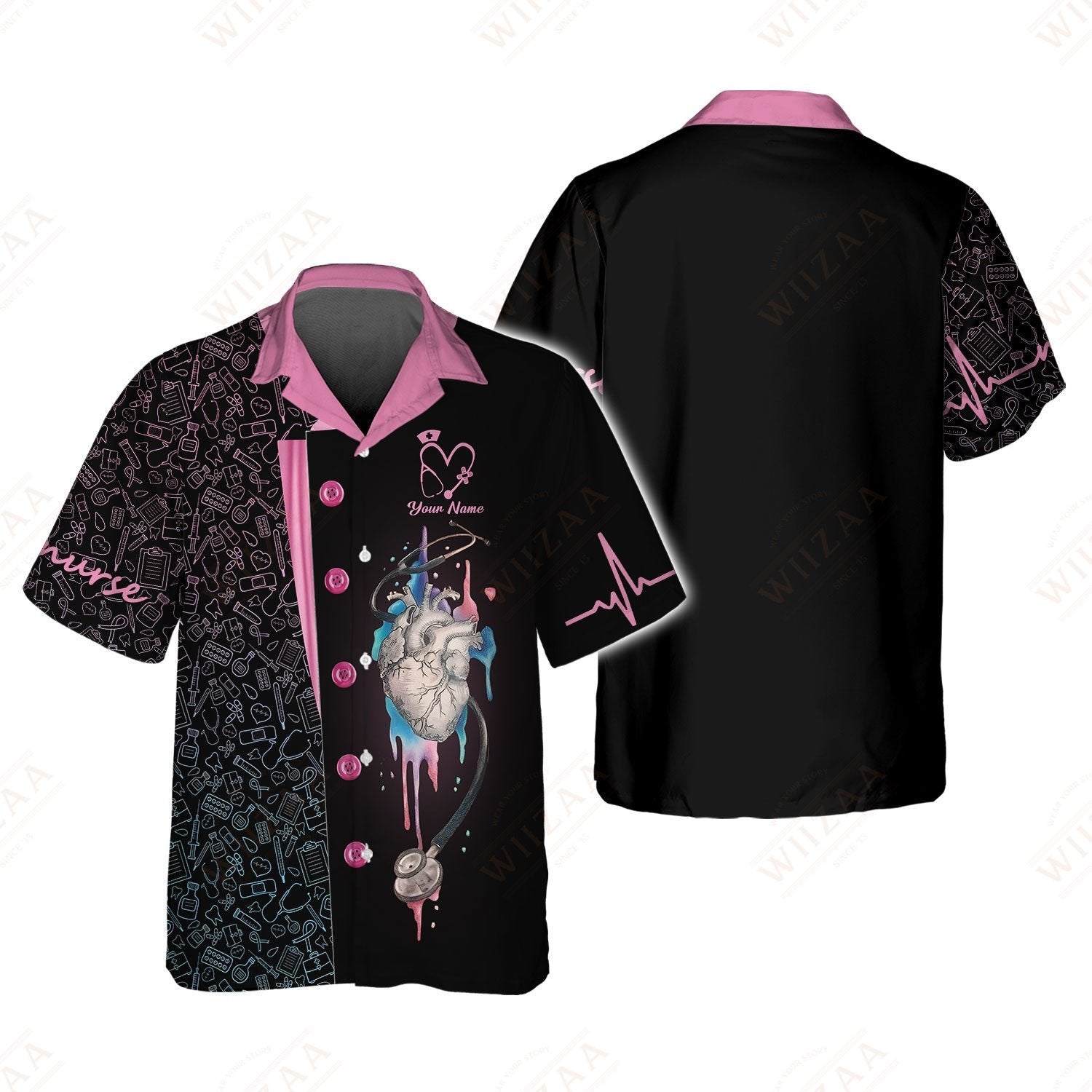 Blisscorners Personalized Nurse Shirt, Anatomical Heart with EKG Pulse Design