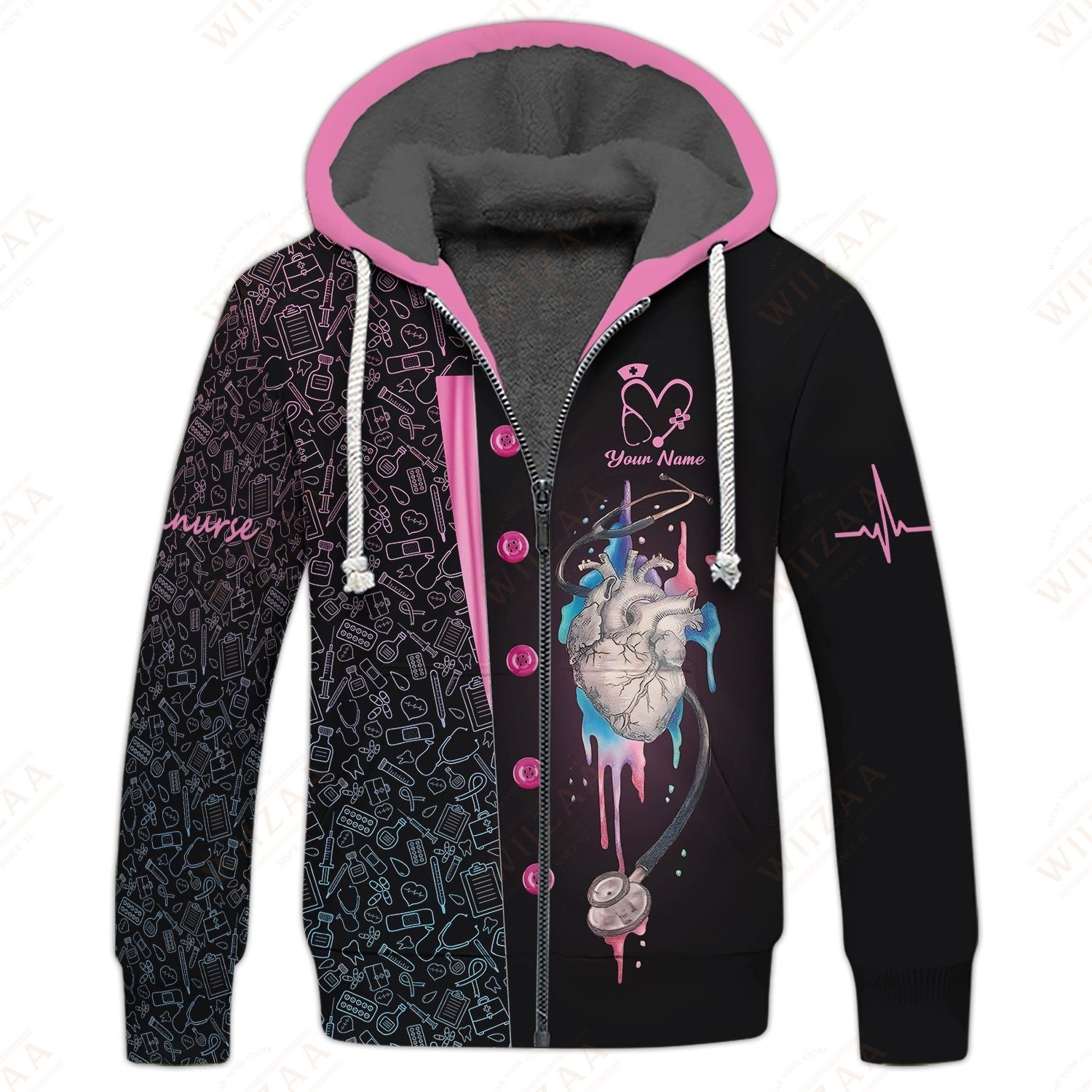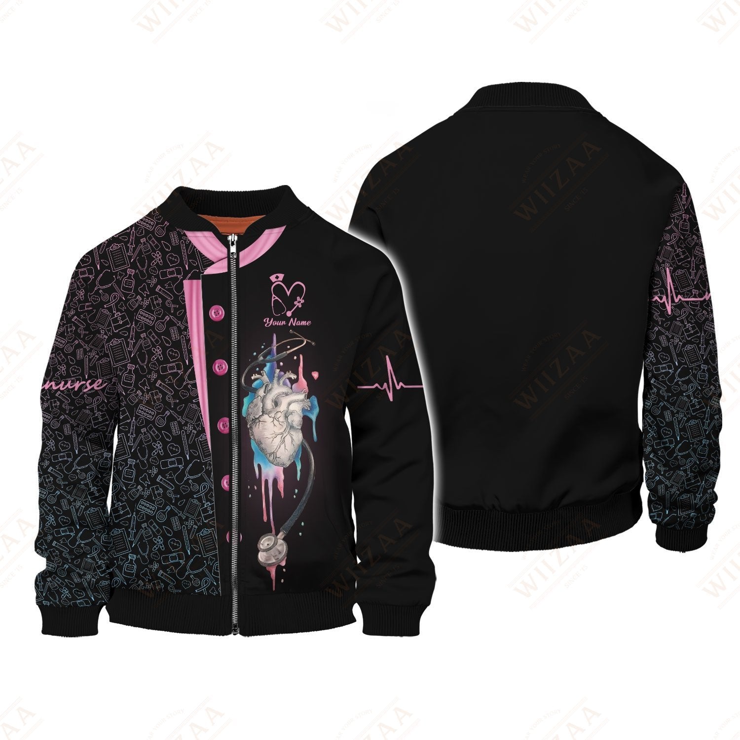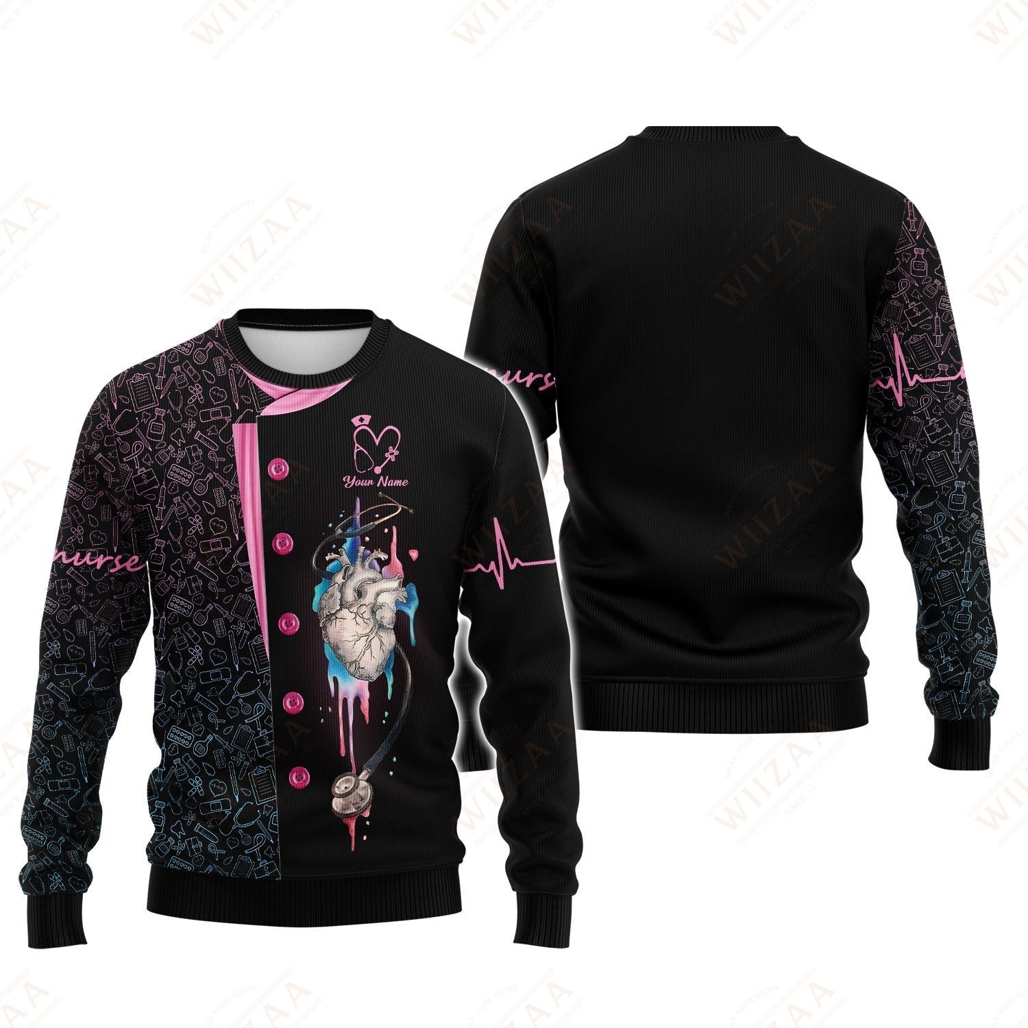 Blisscorners Personalized Nurse Shirt, Anatomical Heart with EKG Pulse Design