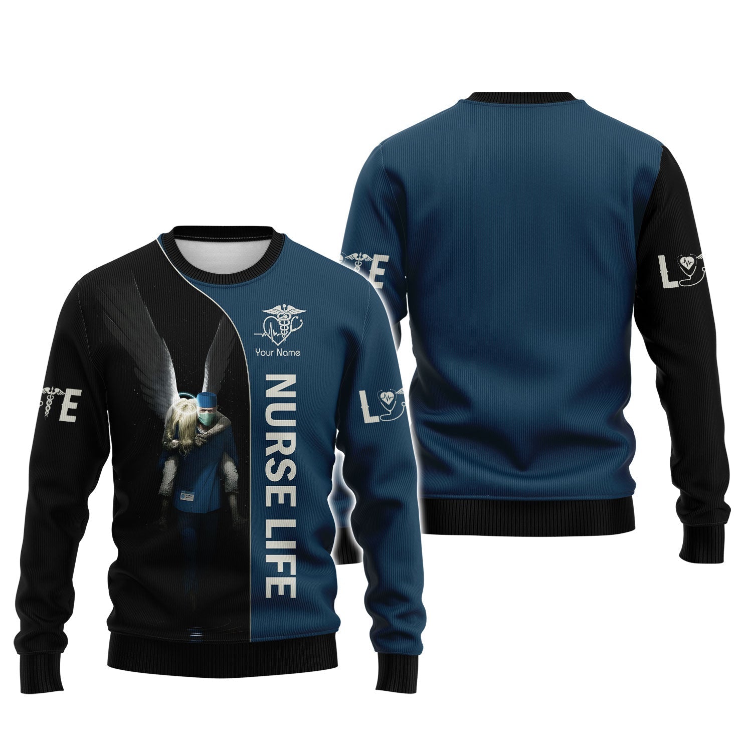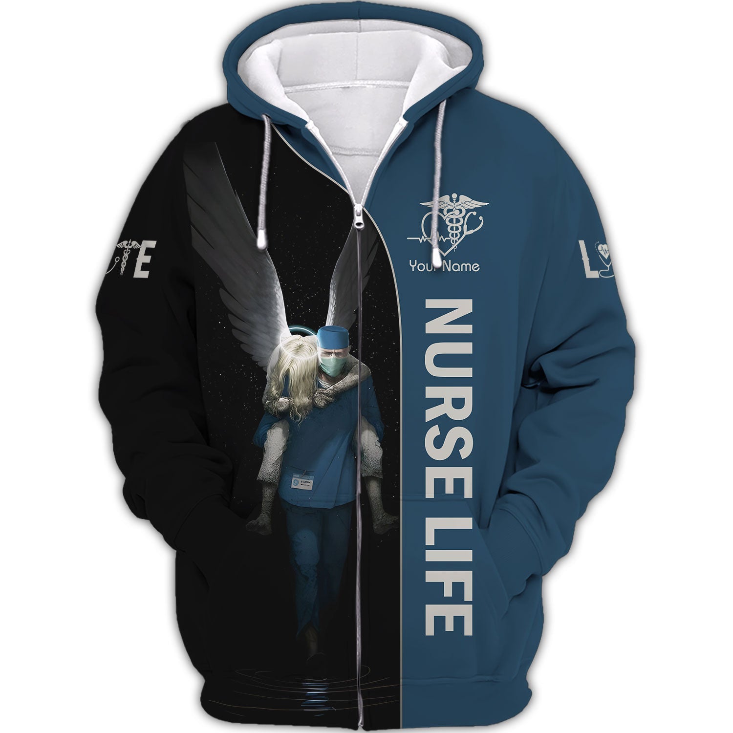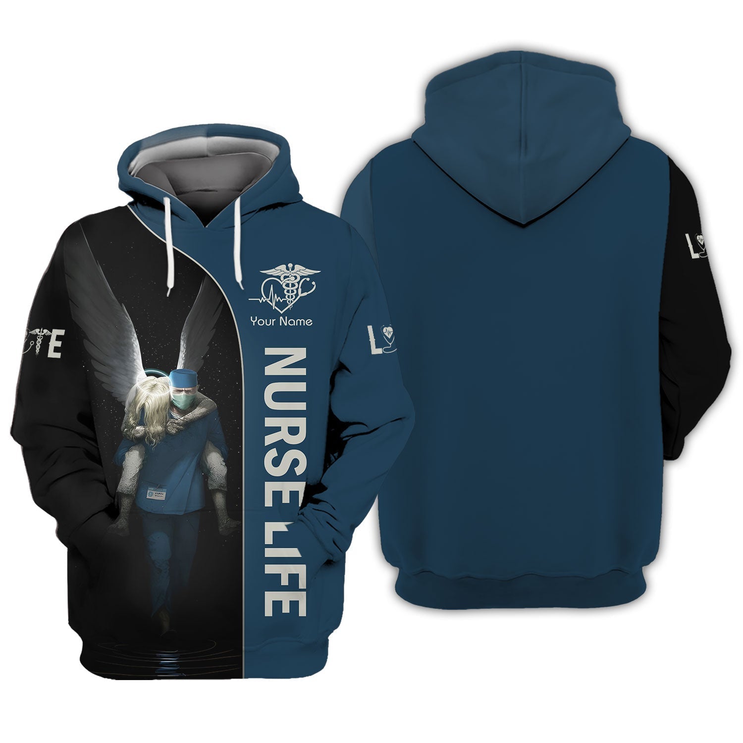 Blisscorners Personalized Nurse Shirt, Angel Wings and Healthcare Hero Tribute