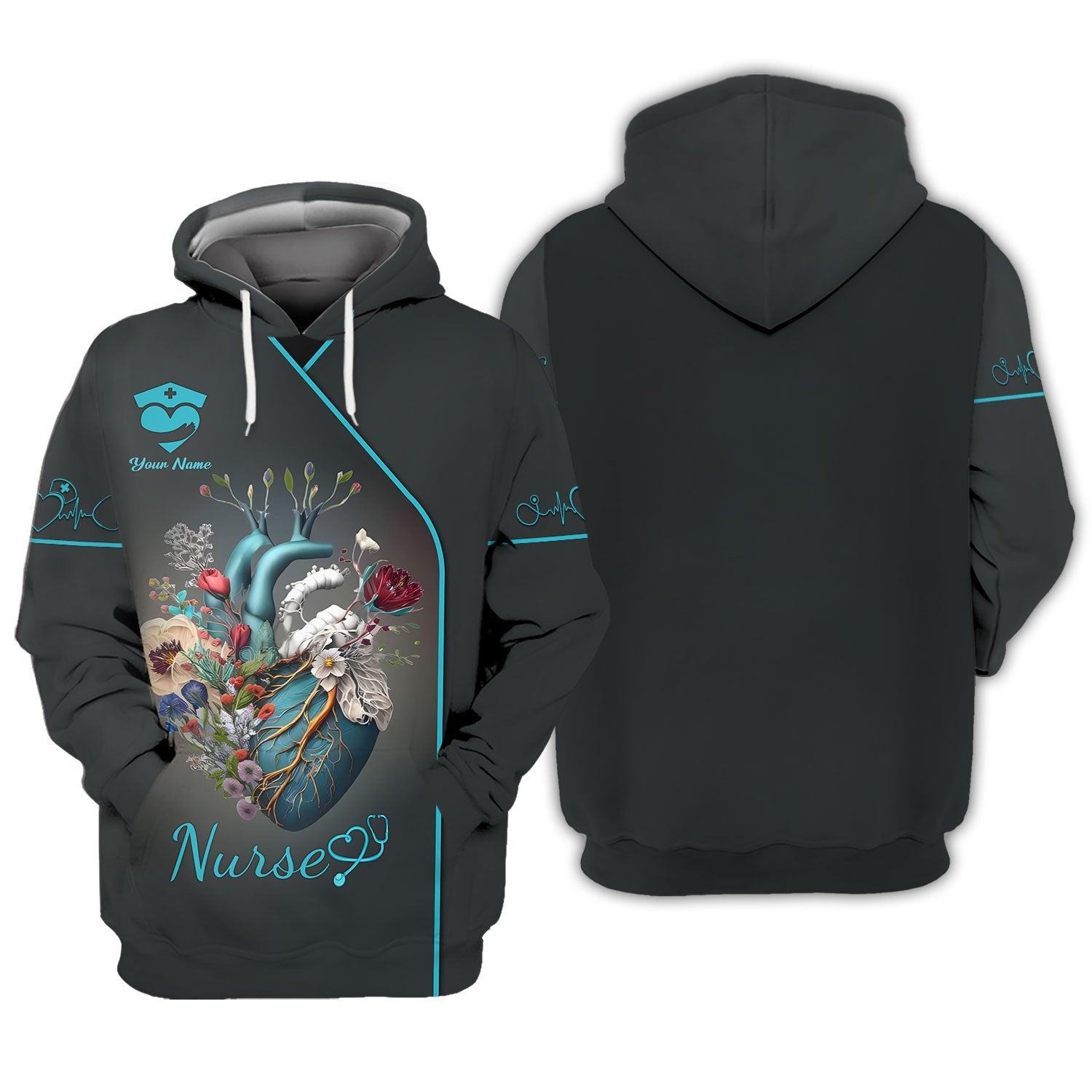Blisscorners Personalized Nurse Shirt - Artistic Anatomy and Floral Design for Healthcare Professionals