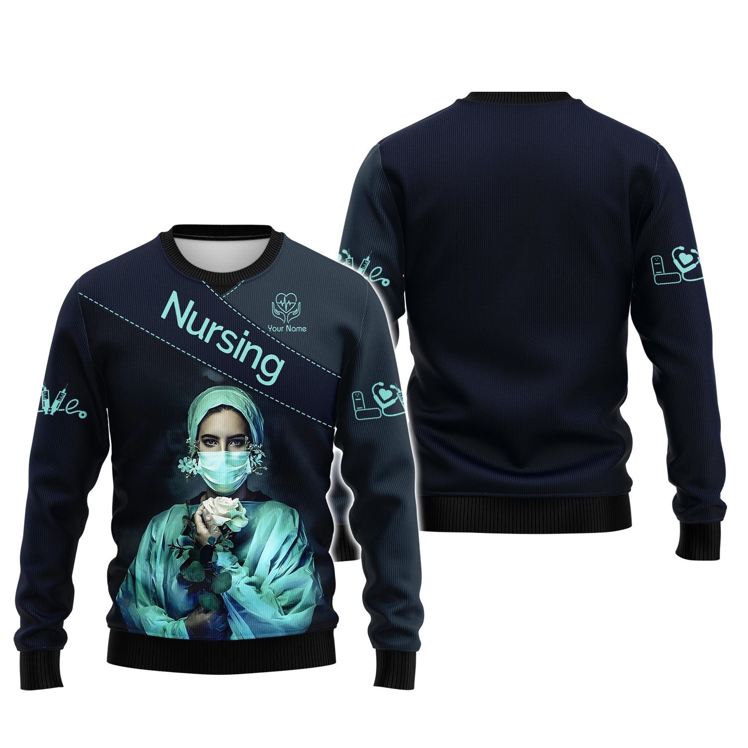 Blisscorners Personalized Nurse Shirt - Elegant Floral Elegance Meets Professional Pride