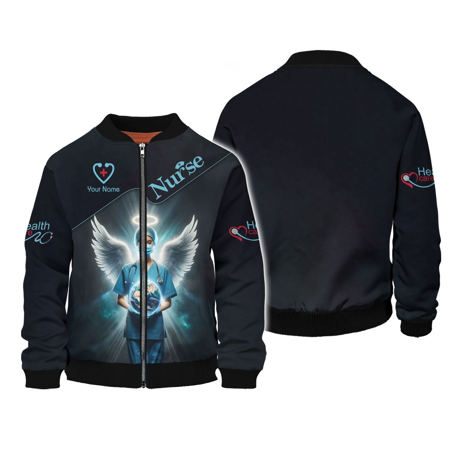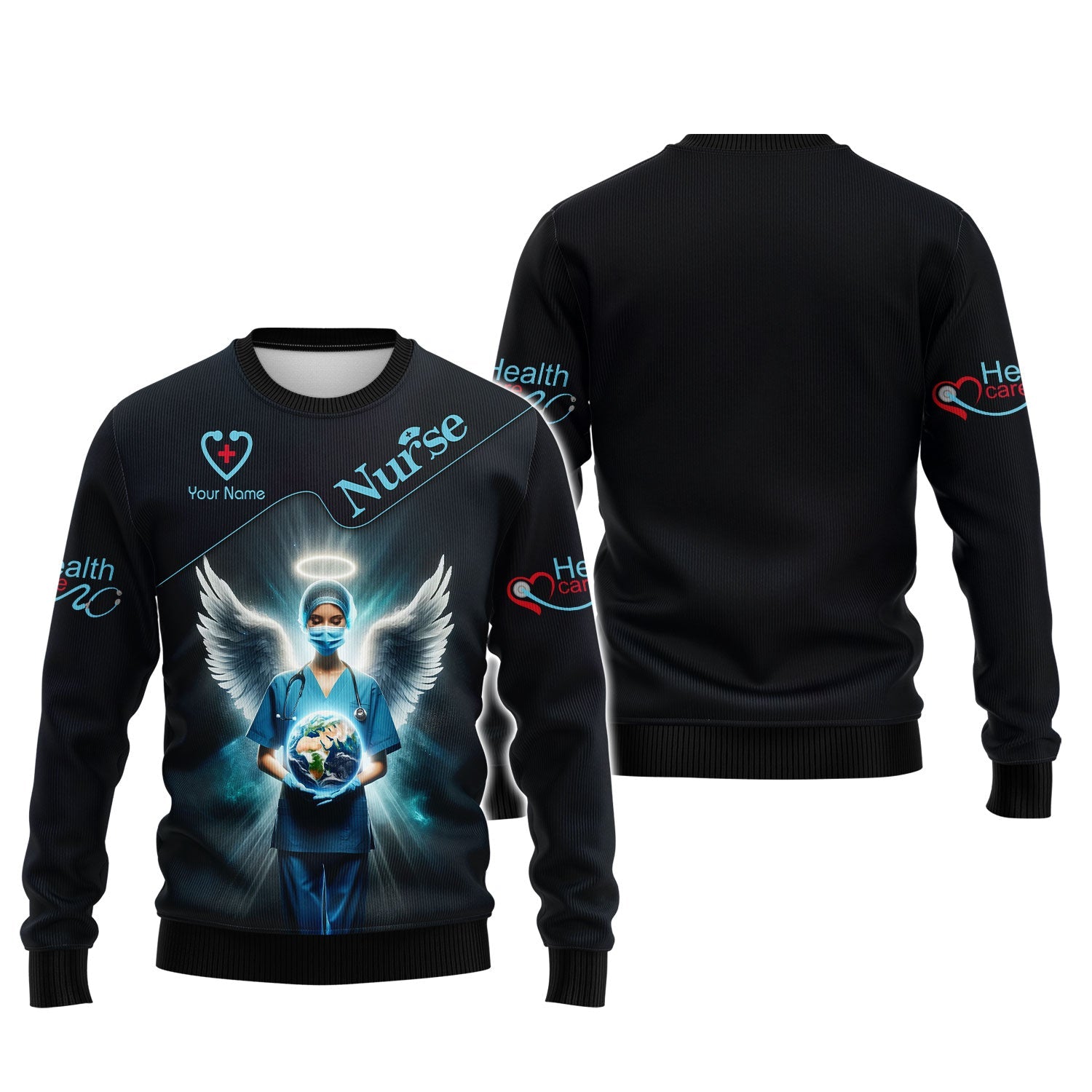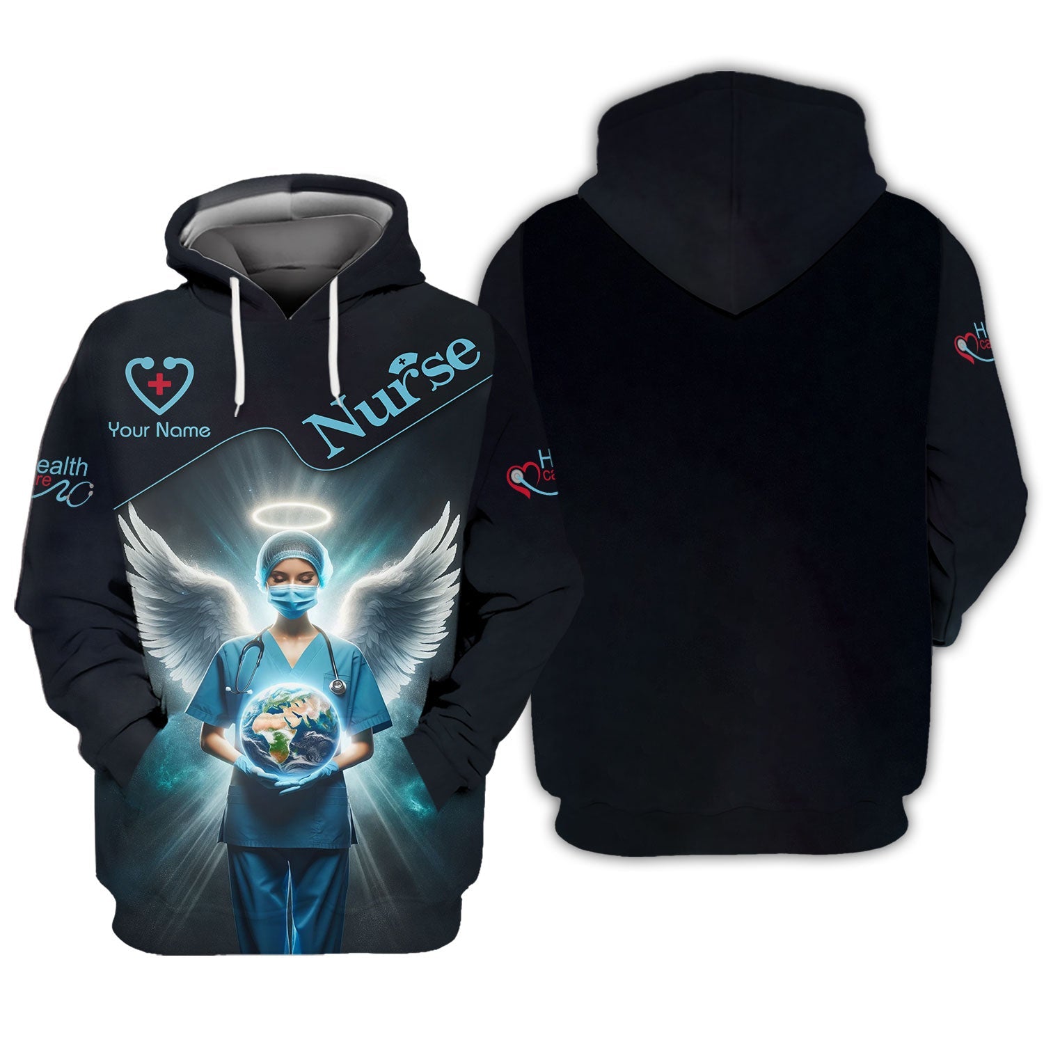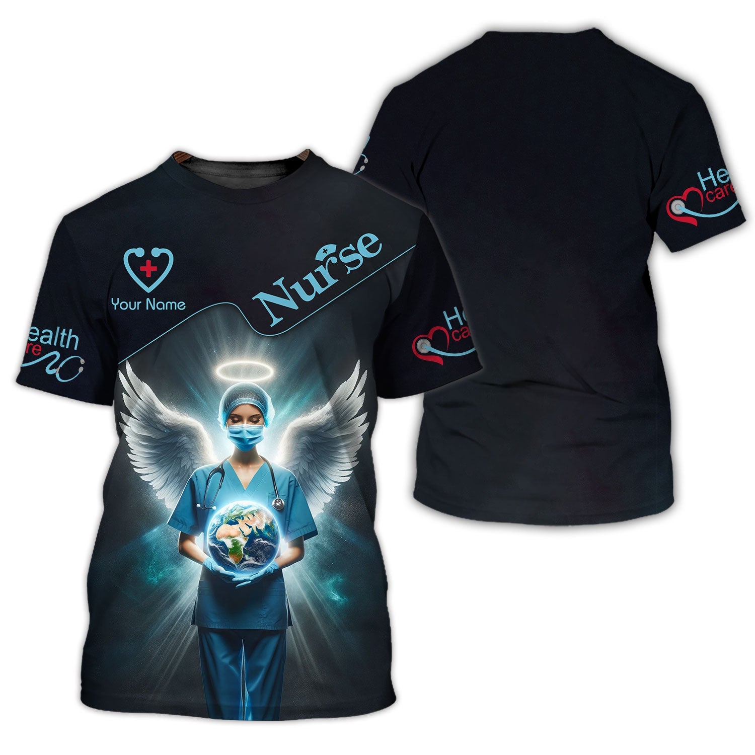 Blisscorners Personalized Nurse Shirts - Guardian Angel Nurse Design for Healthcare Heroes