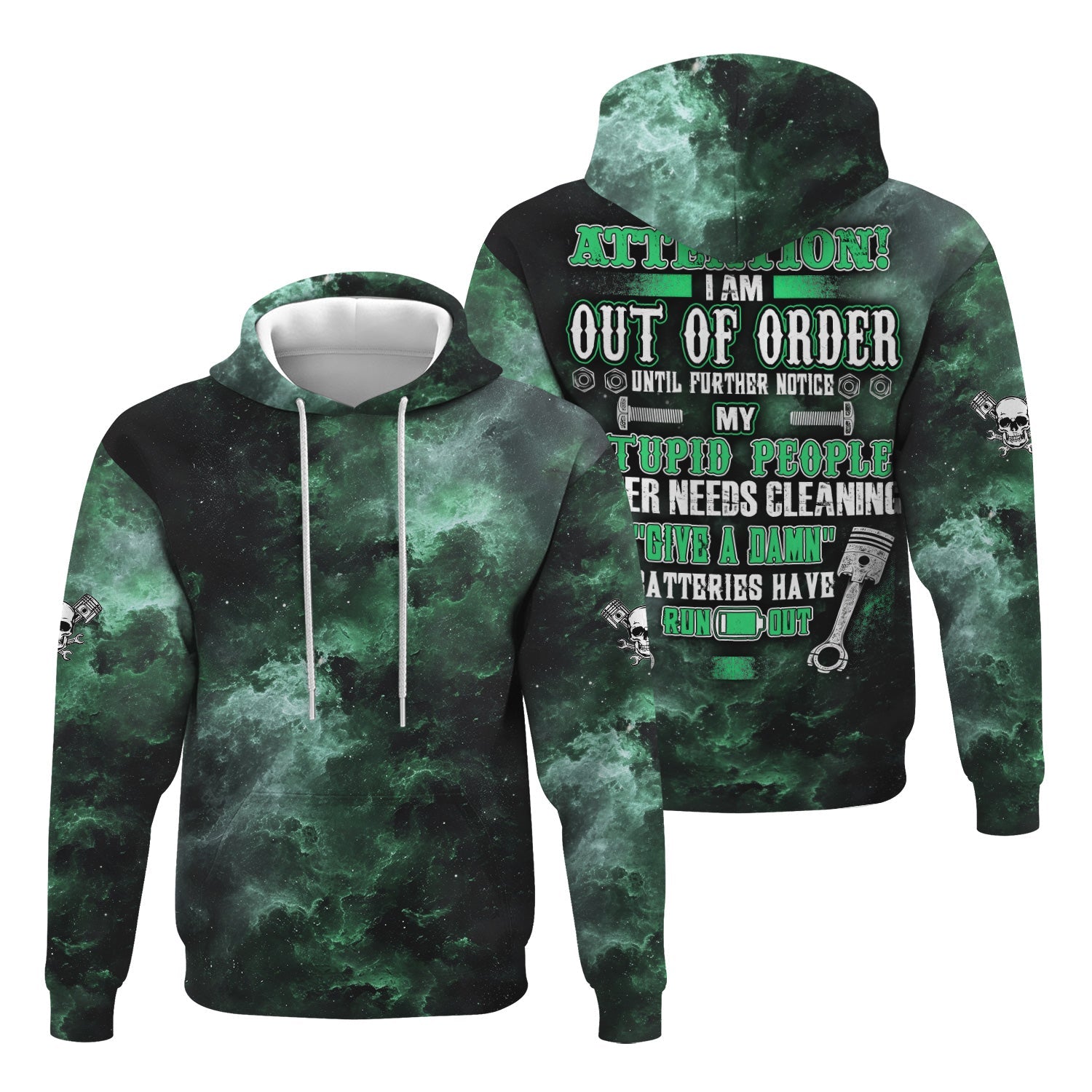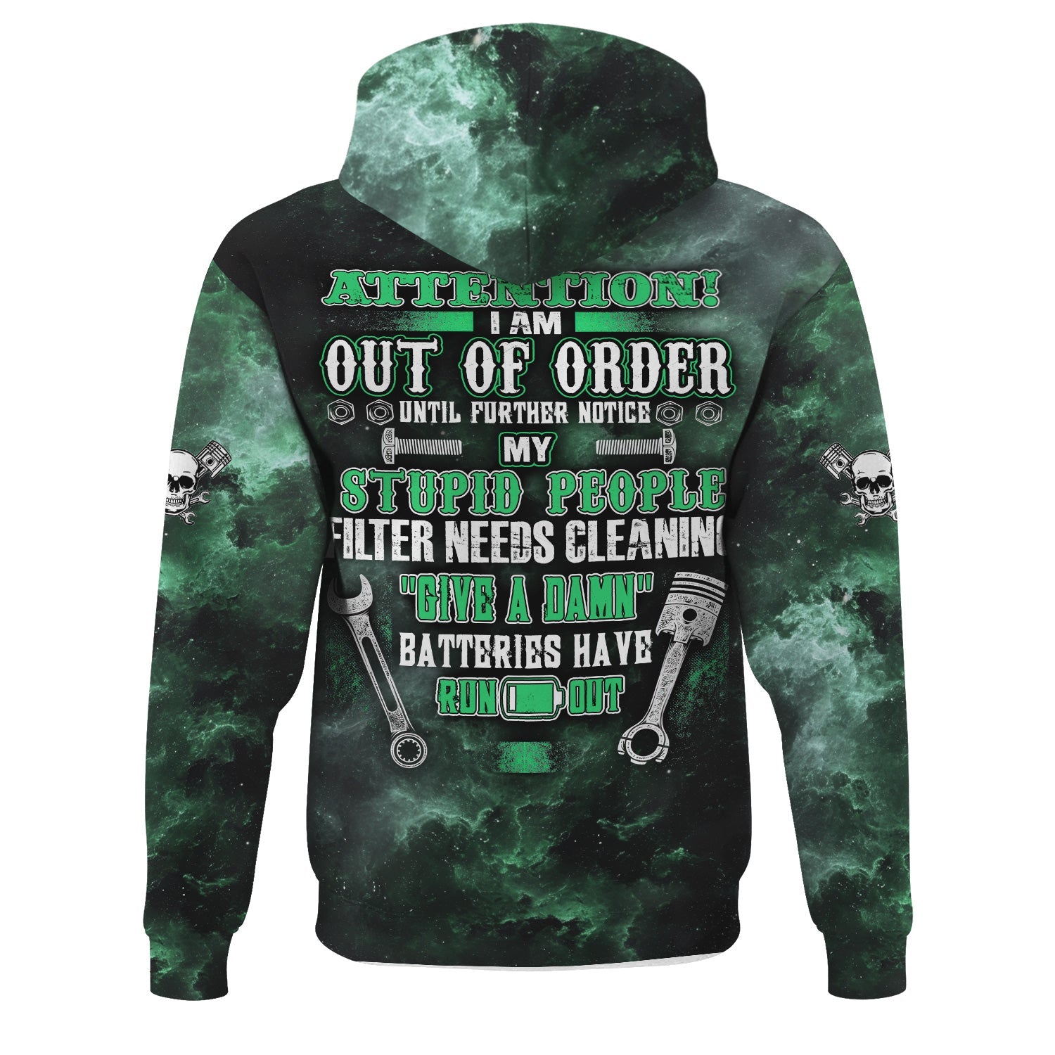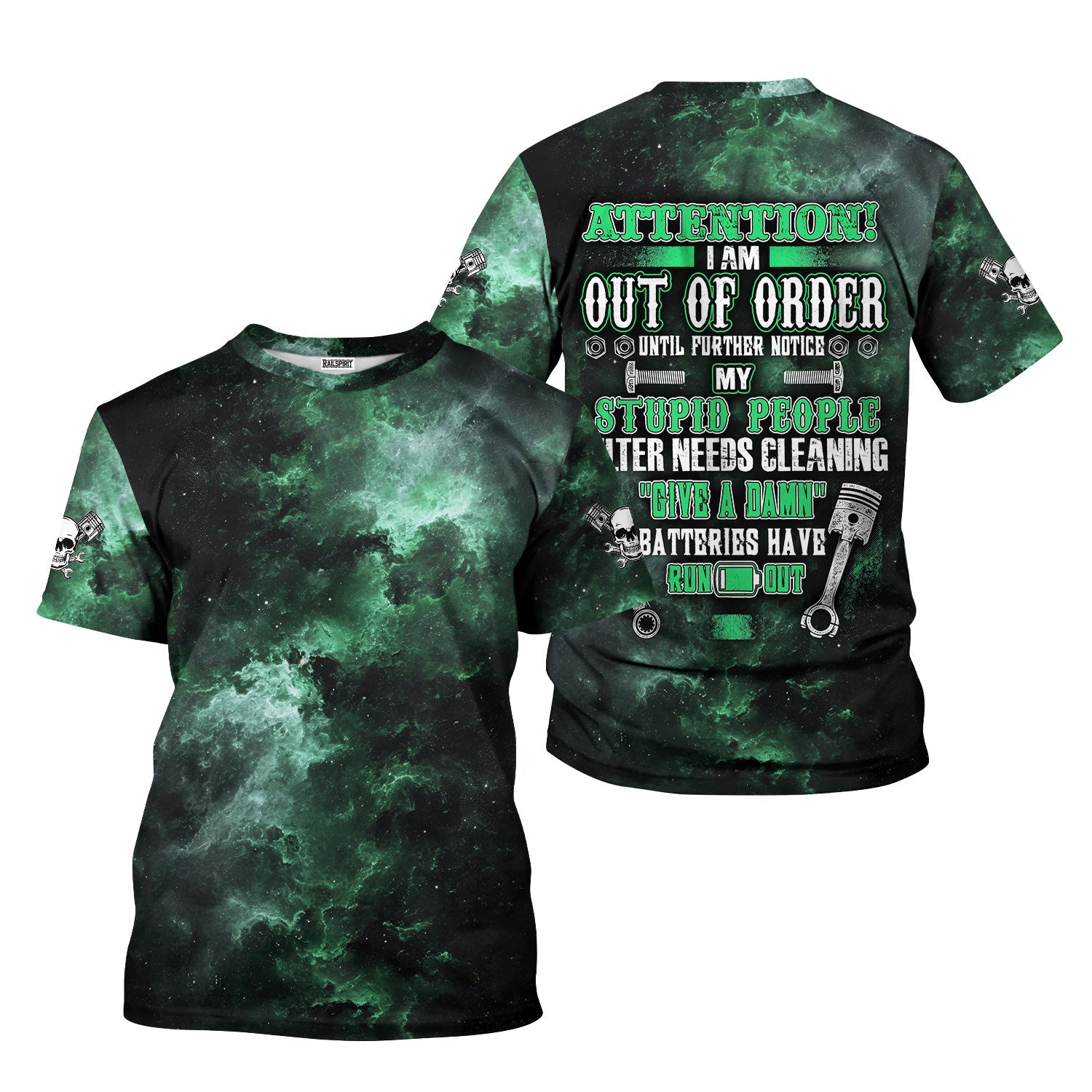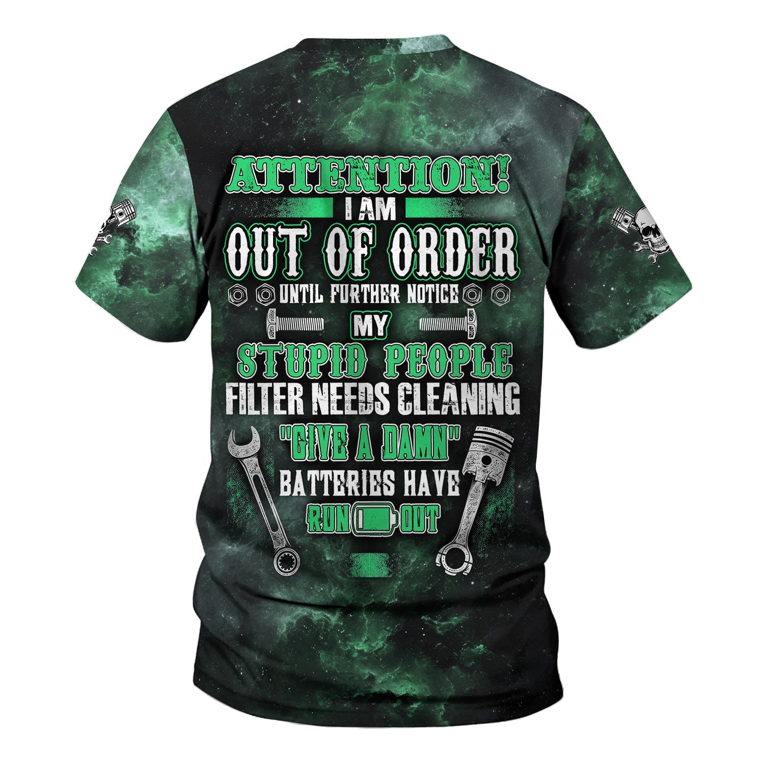 Blisscorners Attention Out of Order Funny Mechanic Shirt, Stupid People Cleaner Quote Graphic Shirt, Gift for Auto Enthusiasts & Mechanics