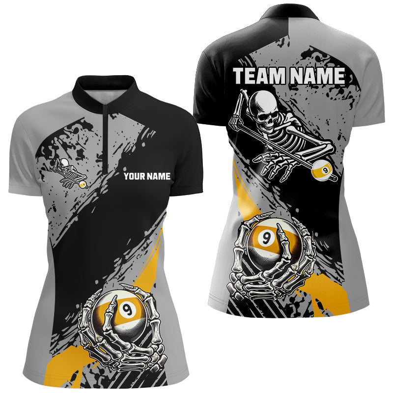 Blisscorners 9 Ball Skeleton Custom Billiard Polo 1/4 Zip Shirts For Women, Funny 9 Ball Pool Billiard Jerseys