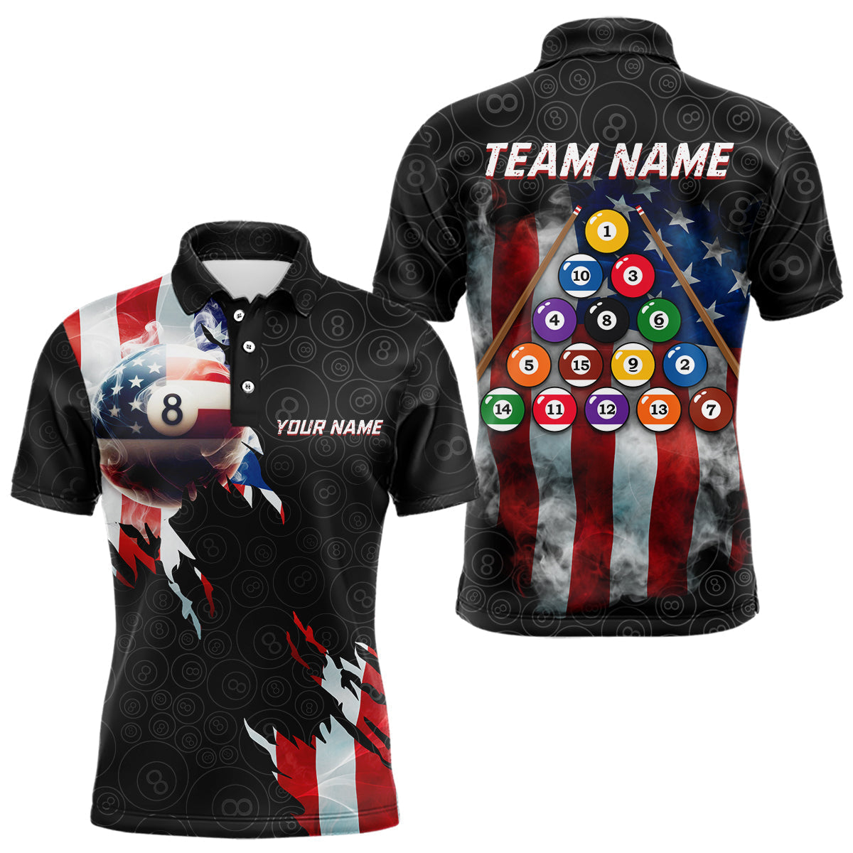 Blisscorners American Flag 8 Ball Billiard Shirts For Men Custom Pool Team Jerseys Polo & Quarter Zip