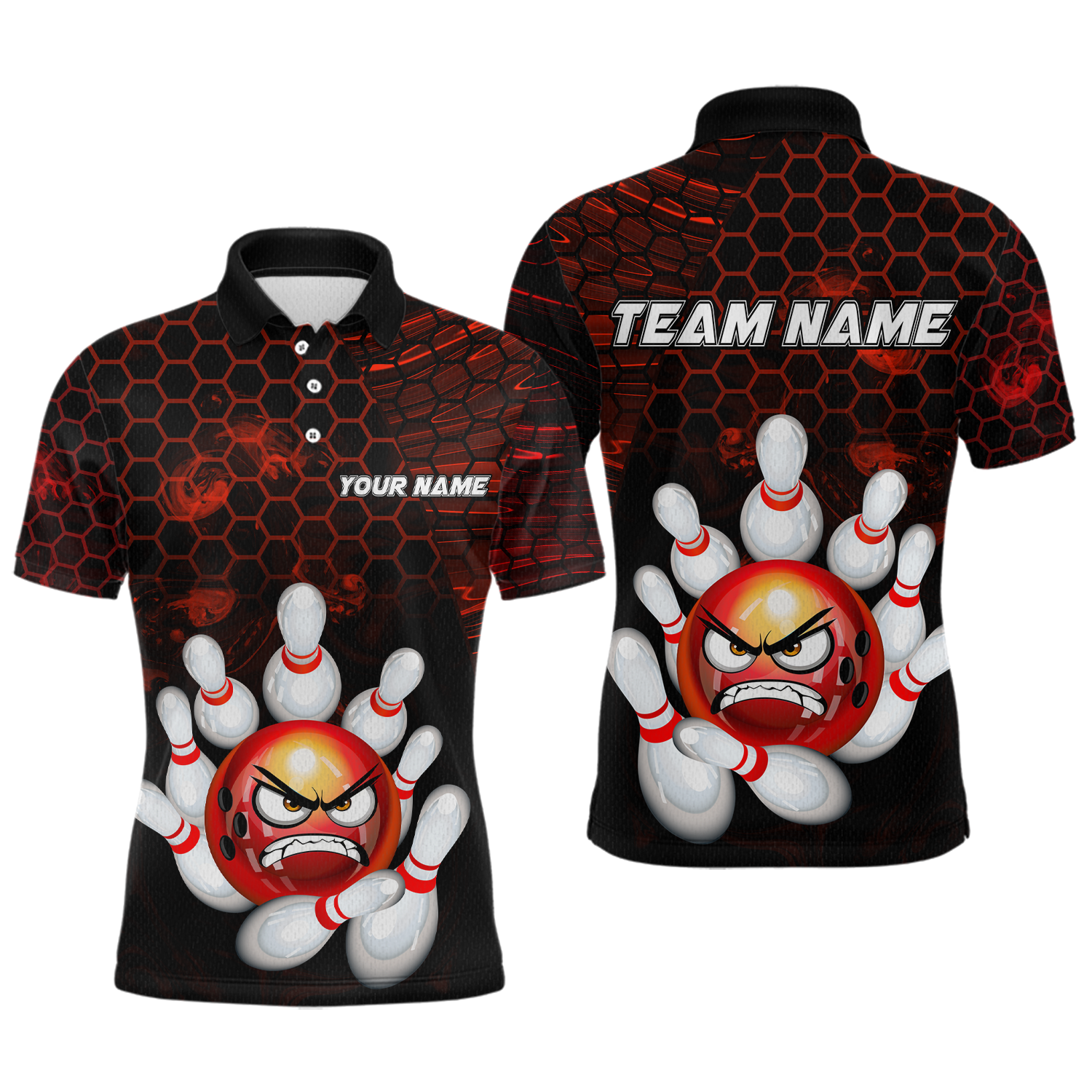 Blisscorners Angry Pin Red Bowling Shirts Custom Bowling Jersey for Men Women and Team