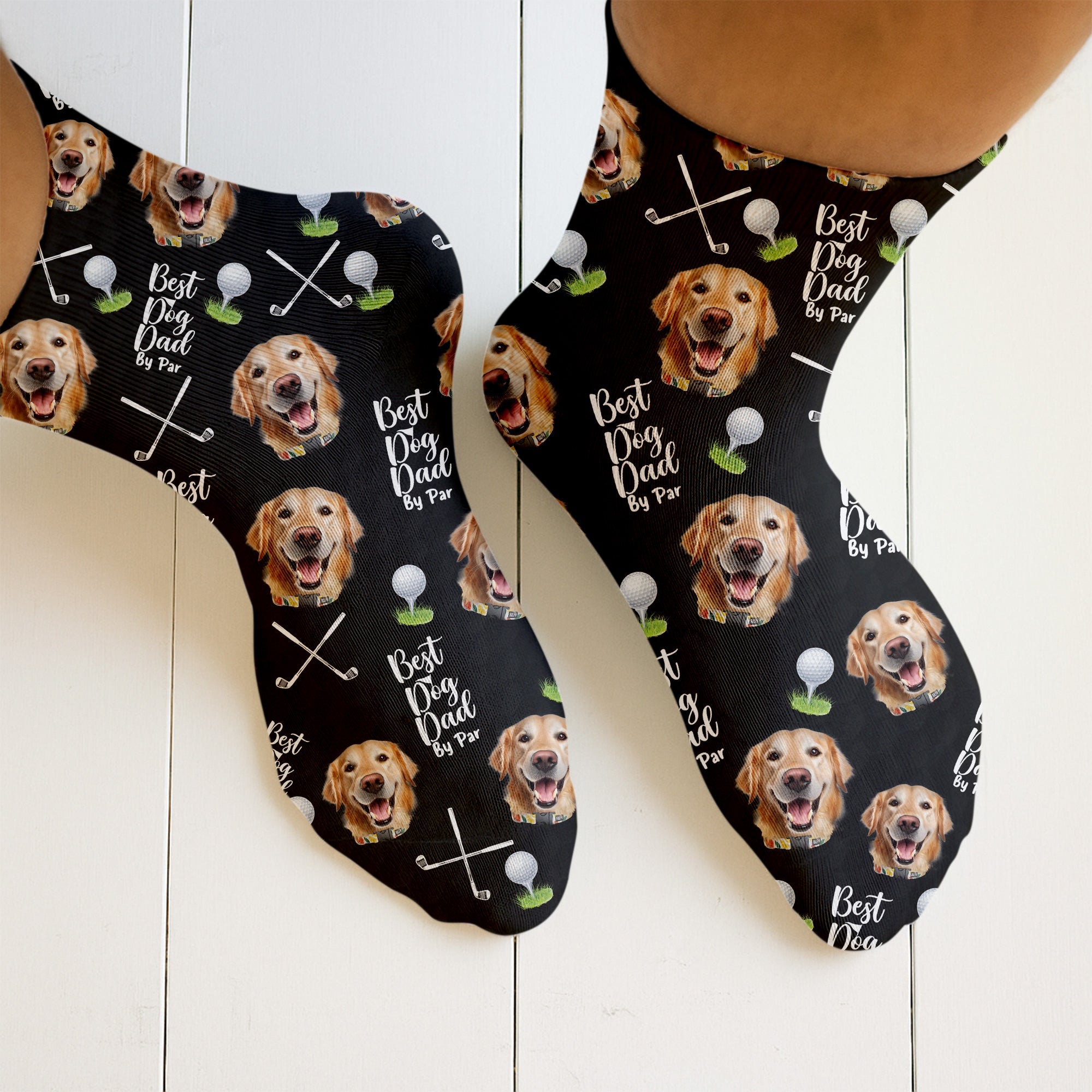 Blisscorners Best Dog Dad By Par Socks With Dog Face, Custom Pet Socks, Funny Crew Socks, Dad Golf GiftLM2611