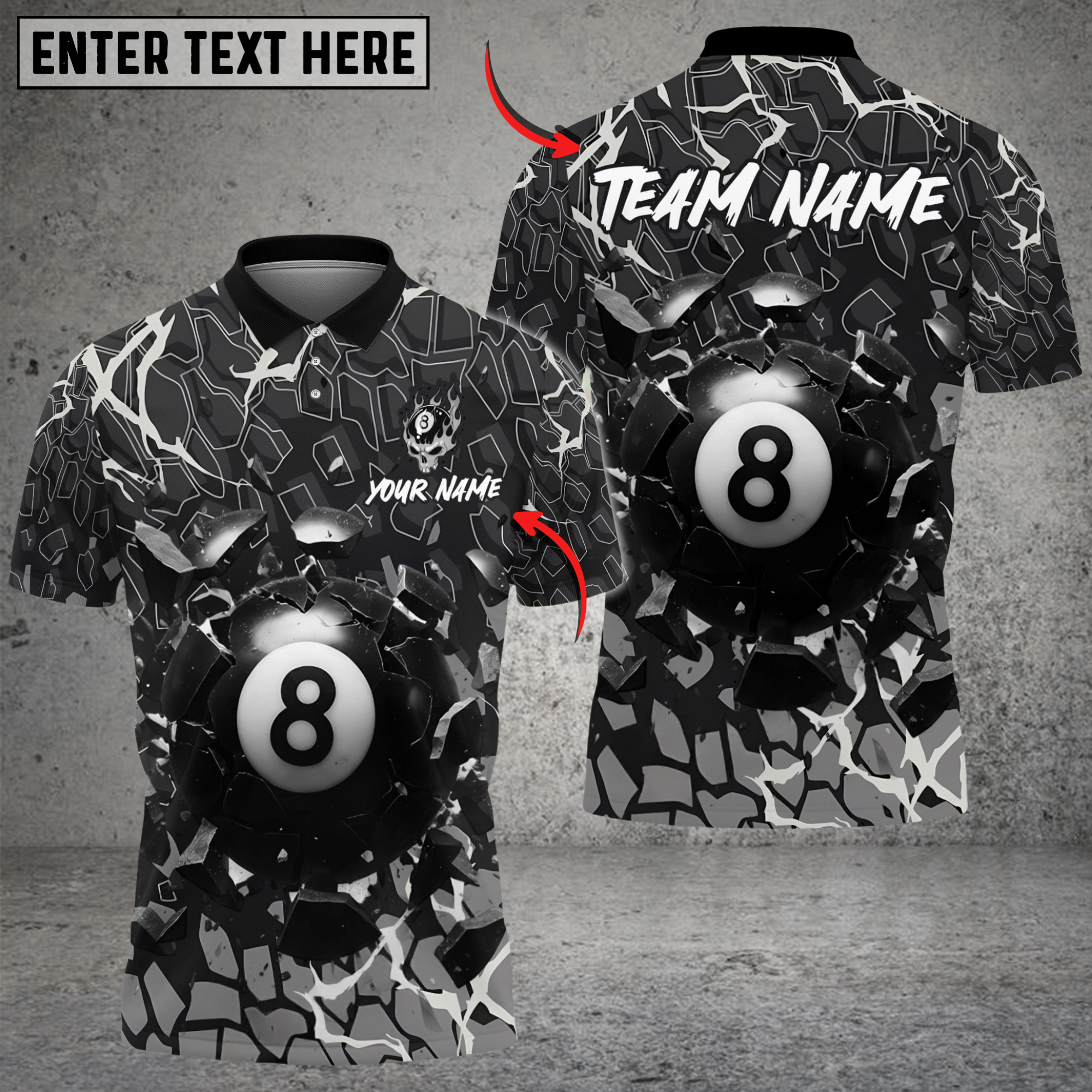 Blisscorners Billiards 8-Ball Crack Wall Personalized Name, Team Name Unisex Shirt
