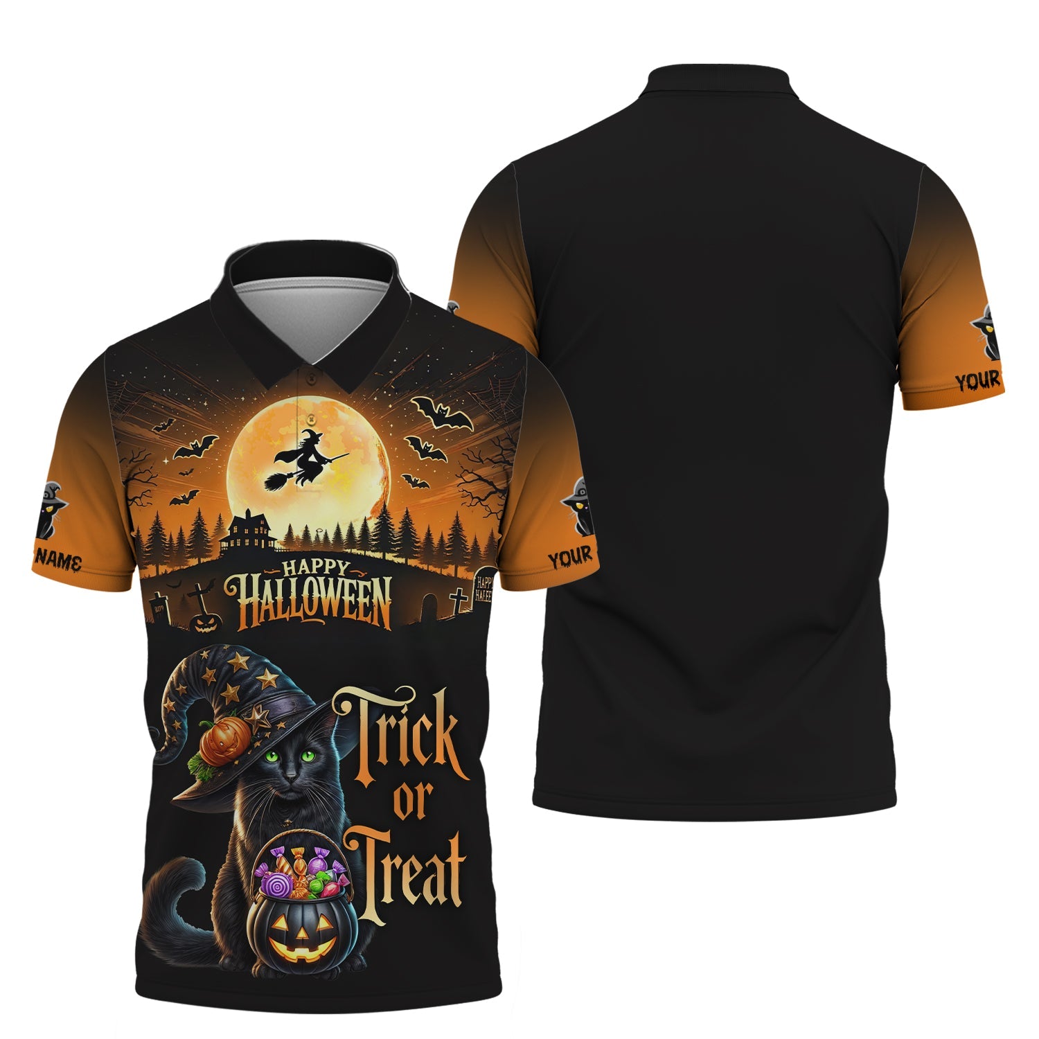 Blisscorners Black Cat Halloween Custom Name 3D Shirt Trick Or Treat Shirts Gift For Halloween Lovers