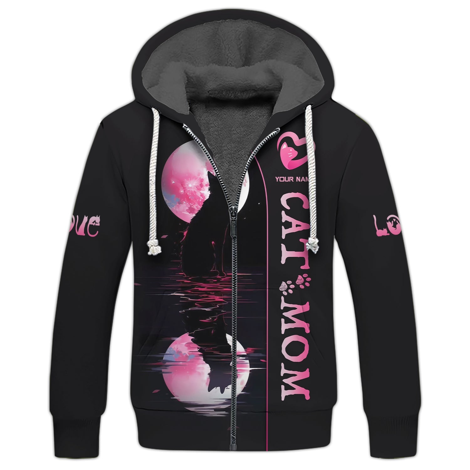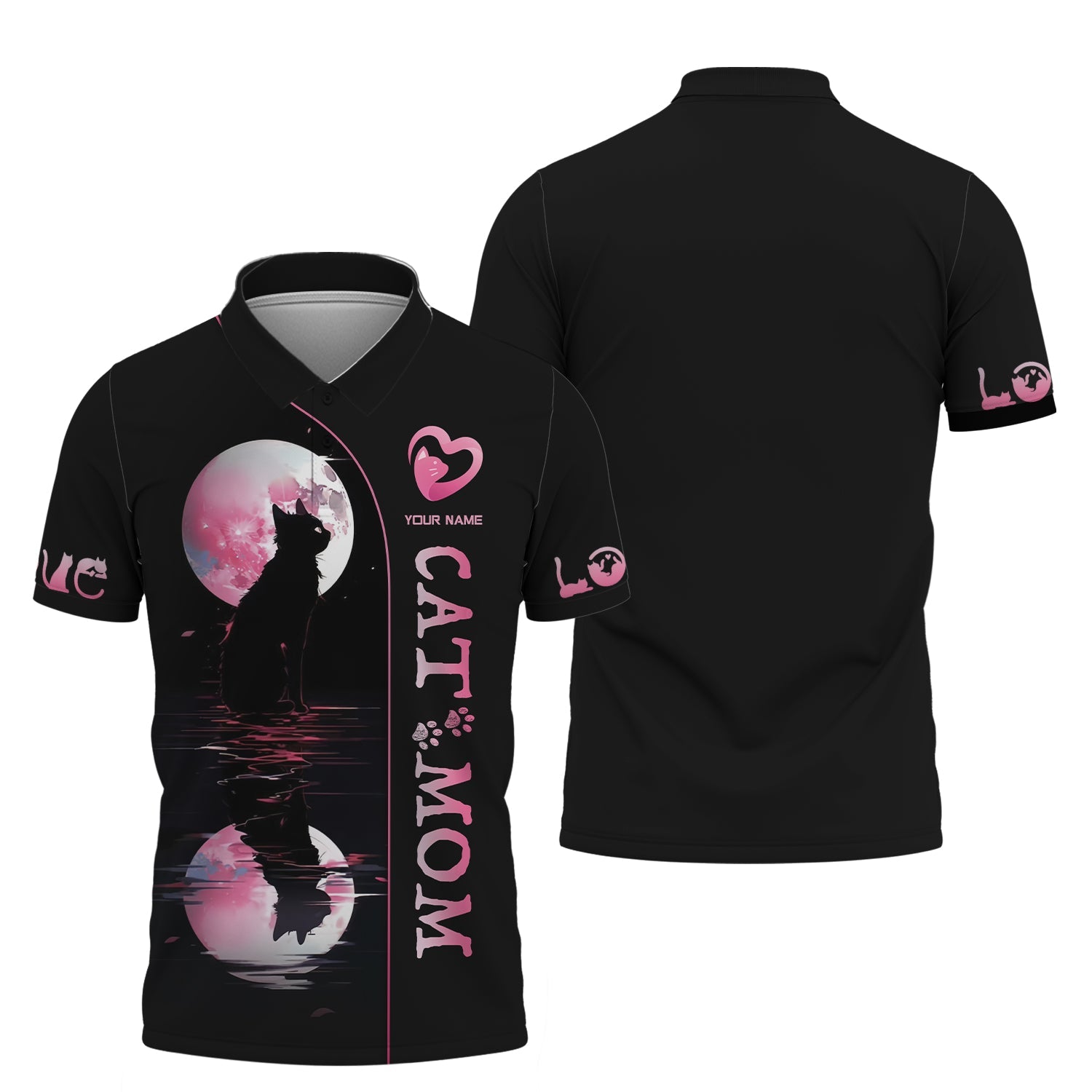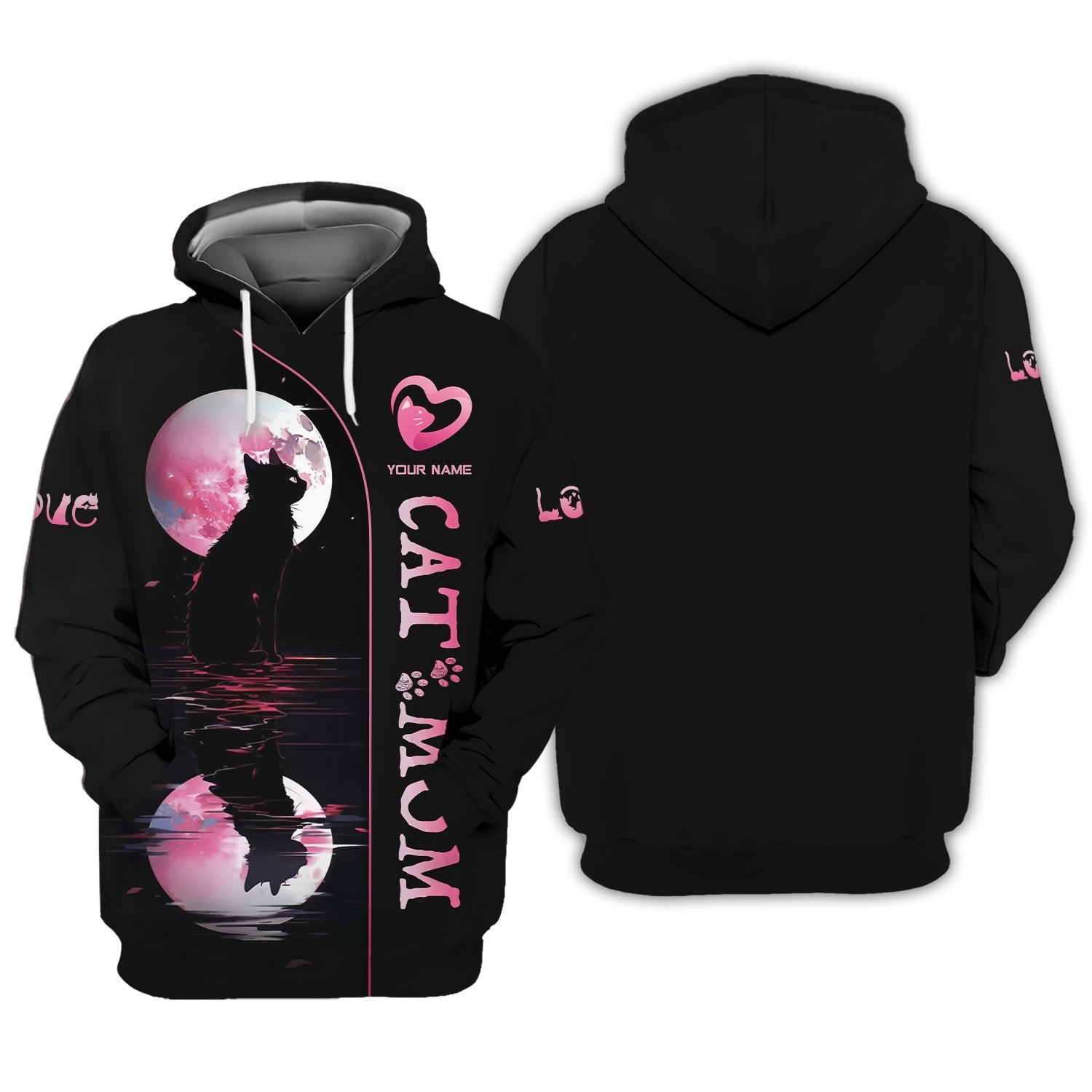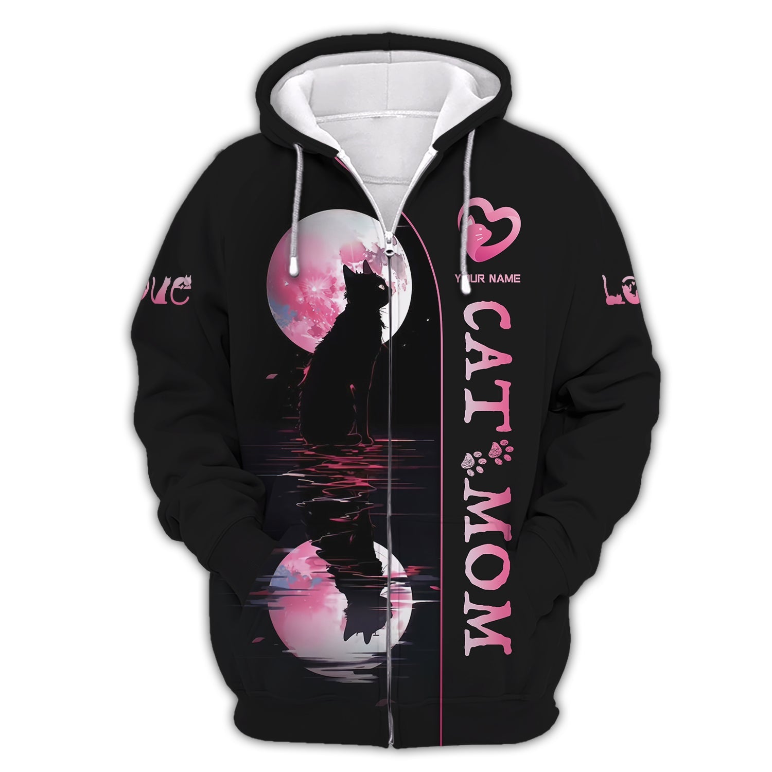 Blisscorners Black Cat With The Moon Custom Name Cat Mom 3D Shirt Gift For Cat Lovers