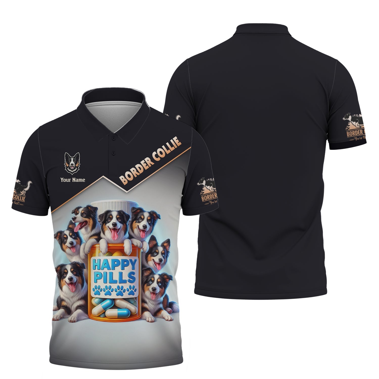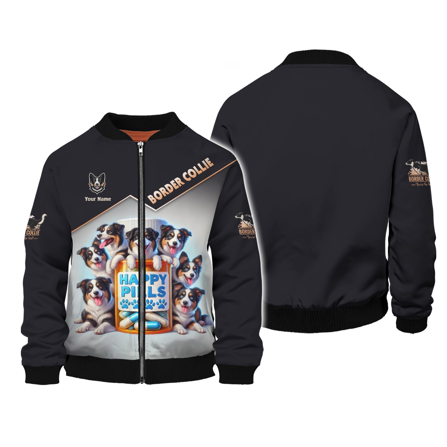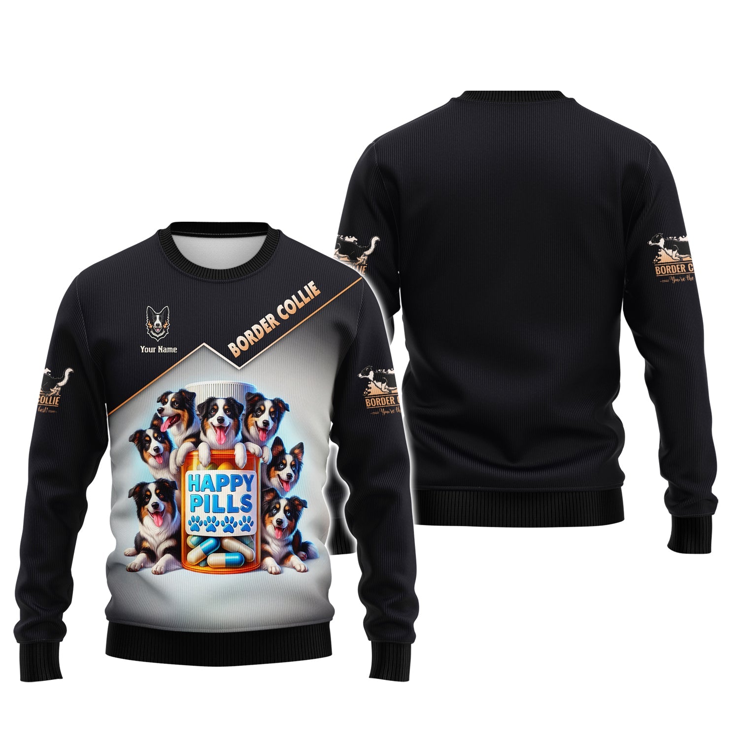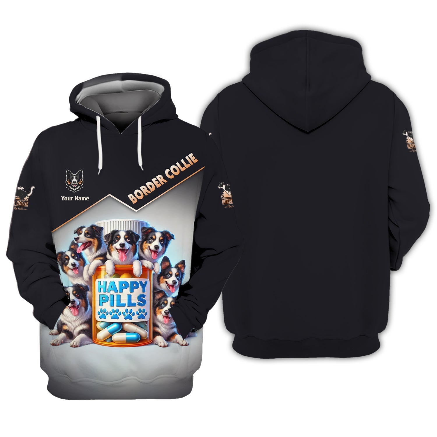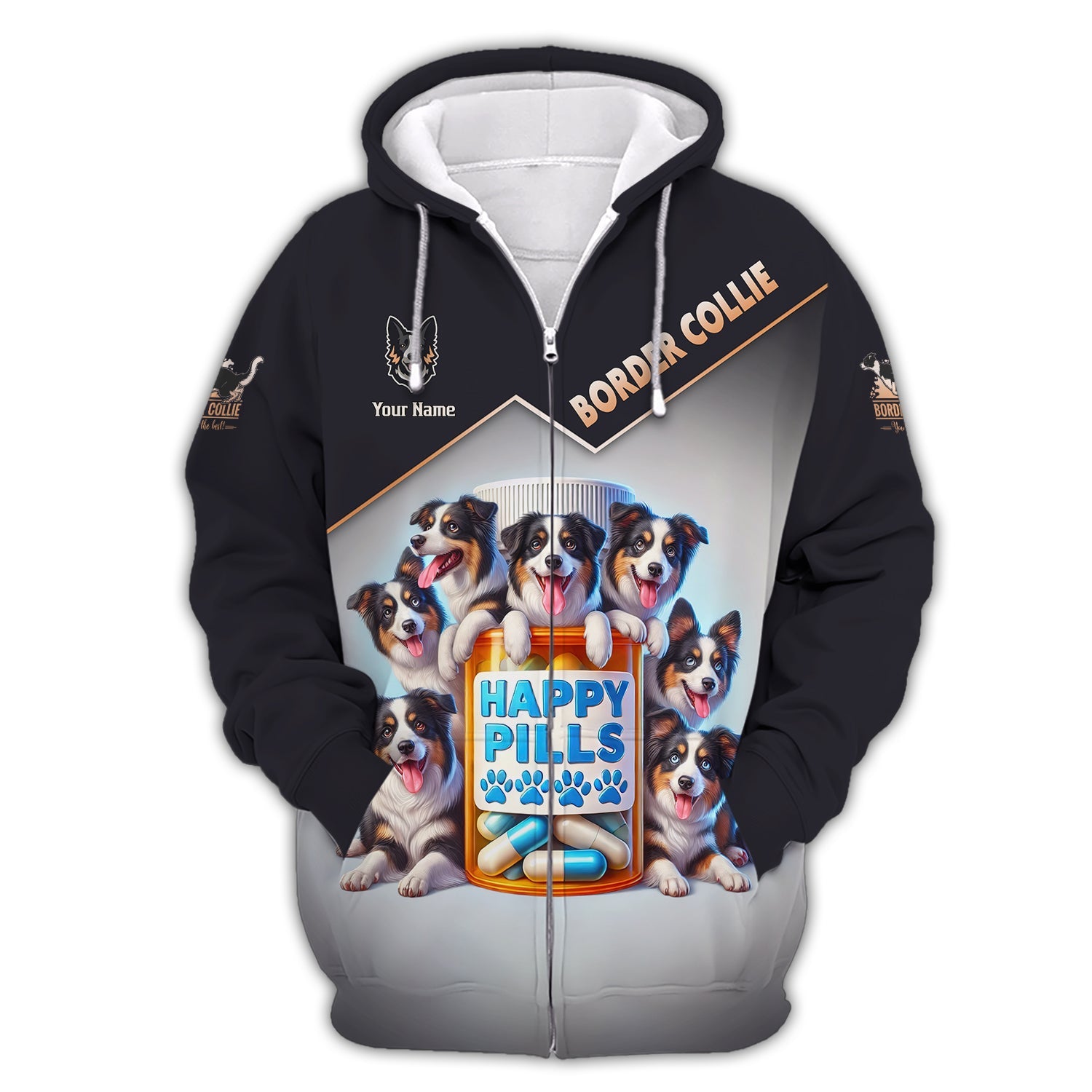 Blisscorners Border Collie Custom Name 3D Shirt Happy Pills Border Collie Gift For Dog Lovers