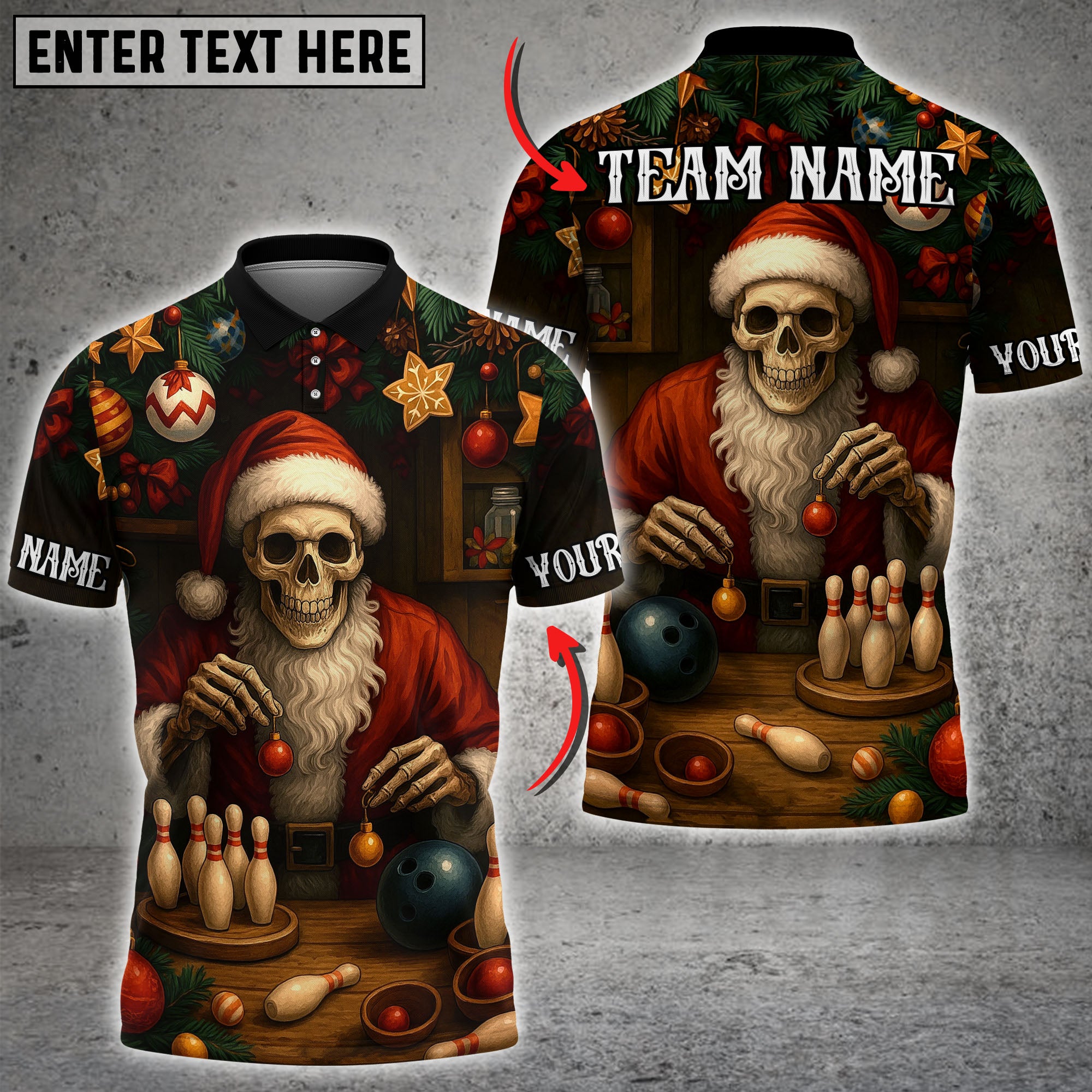 Blisscorners Bowling Skeleton Santa Christmas Personalized Name 3D Unisex Shirt