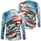 Blisscorners Custom Patriotic Amercian Flag Largemouth Bass Long Sleeve Tournament Fishing Shirts LM0607