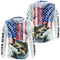 Blisscorners Custom Patriotic Largemouth Bass US Flag Long Sleeve Fishing Shirt, Bass Fishing Jersey LM0607