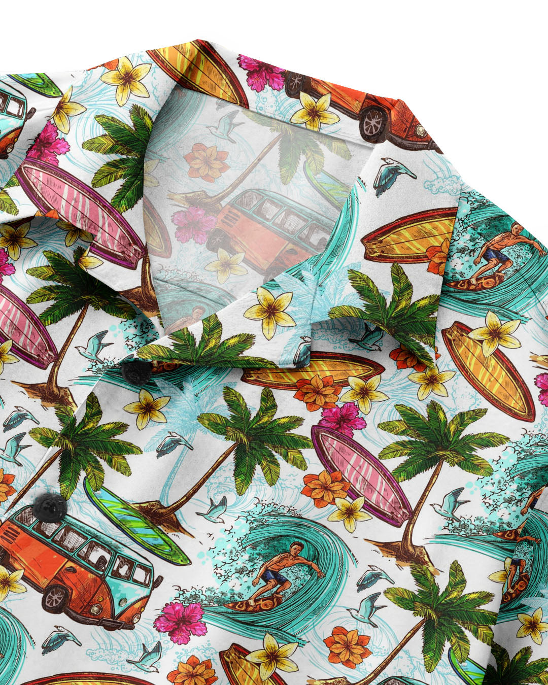 BLISSCORNERS CAMPING BUS SURF PALM TREES SEAMLESS HAWAIIAN SHIRT