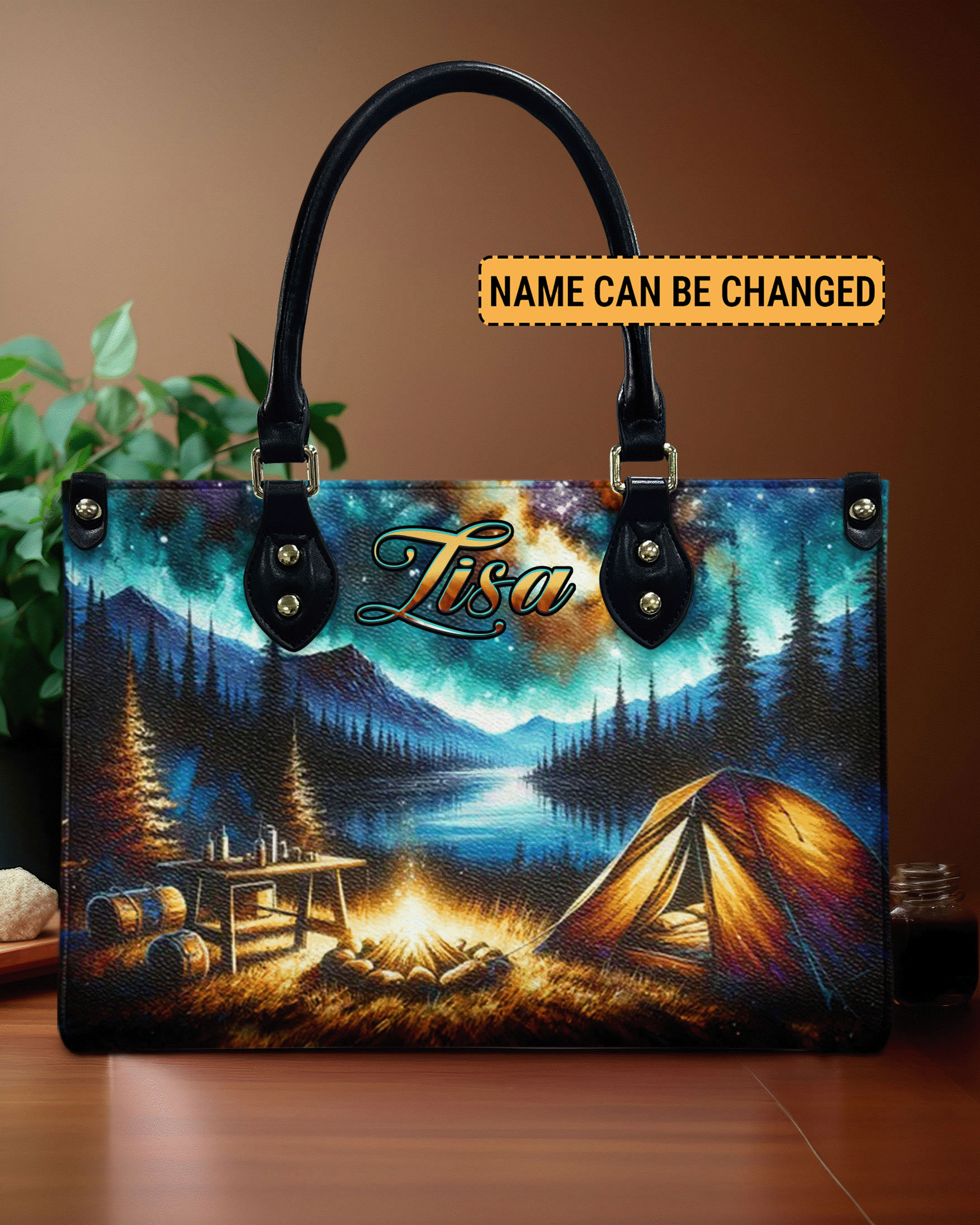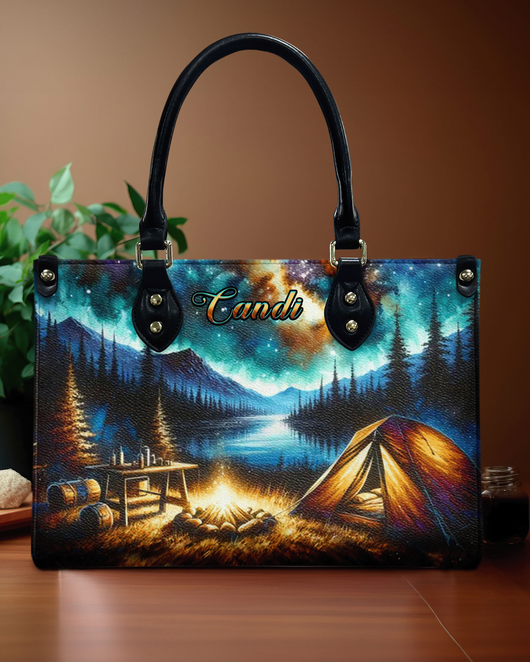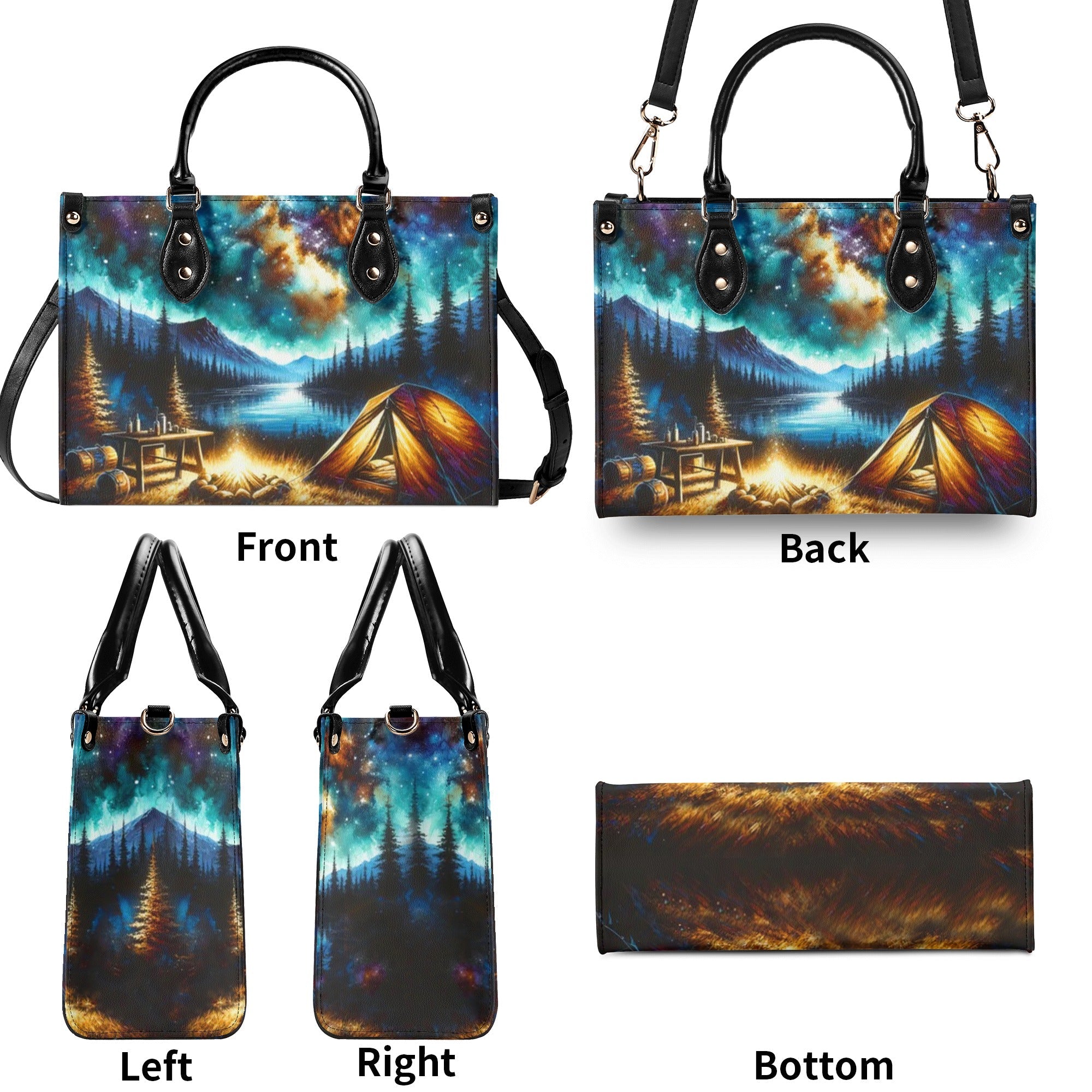 BLISSCORNERS CAMPING SCENE UNDER STARRY NIGHT SKY LEATHER HANDBAG