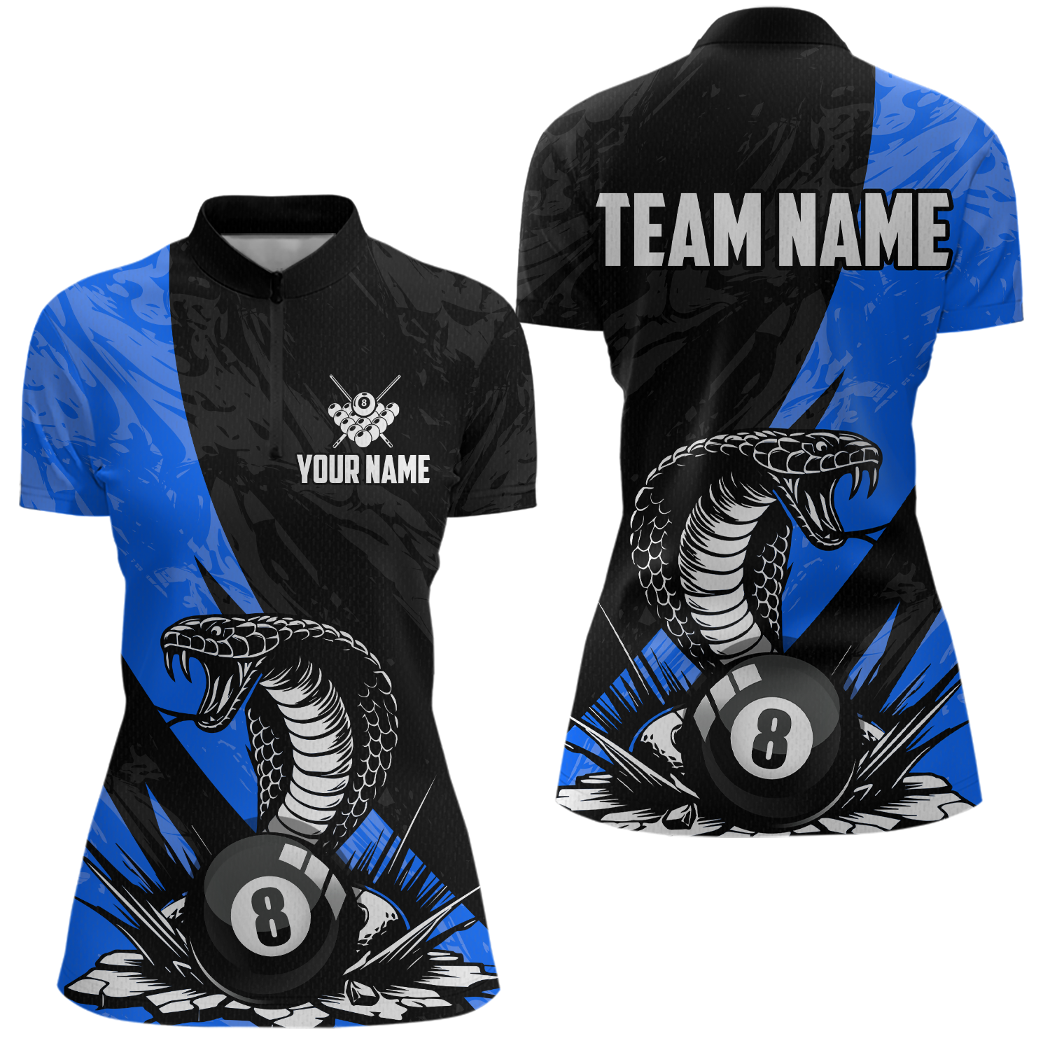 Maxxcorners Custom Blue Cobra Snake 8 Ball Pool Billiard Shirts for Men Team Polo & 1/4 Zip Shirts MT0307